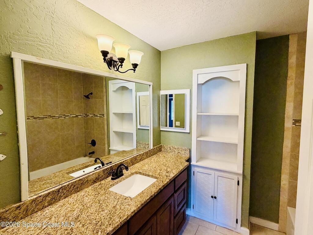 Great floorplan on this 3 bedroom, 2 bath with additional flex room/den! Completely renovated in 2015. Granite countertops in the kitchen and baths. Tile floors throughout- No carpet. New roof 2024, HVAC 2023, 12'x22' Screened patio 2021, Water heater 2024, Garage door 2021. Breakfast bar. Butler's pantry. Hurricane shutters. Interior laundry room. City water & sewer. Large yard nestled on a quarter-acre filled with Florida native landscaping. Prime location just barely south of Palm Bay Road at Dairy Road, convenient to major employers, I-95, parks, shopping, and schools.