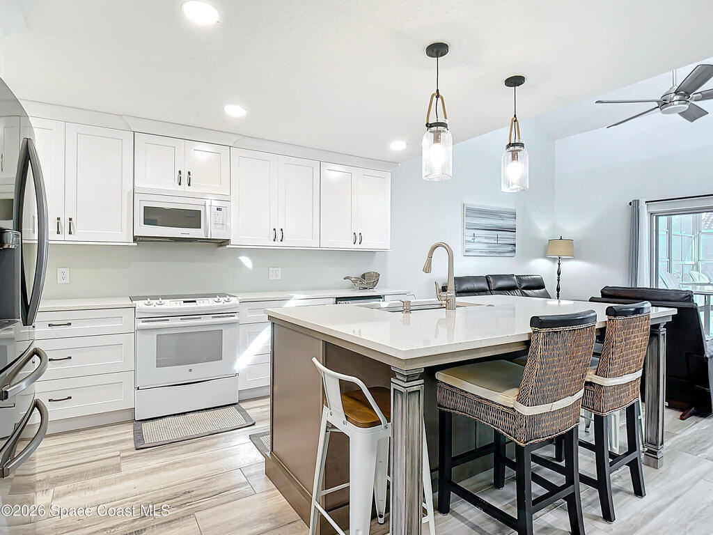 Beautifully UPDATED, MOVE-IN READY & RIVER VIEWS! Live the coastal lifestyle in this OCEAN-to-RIVER condo in desirable Lighthouse Cove, Melbourne Beach. This south-side river view unit features 2 bedrooms, 2 baths, a large one-car garage, and a screened lanai with stunning river views from the living room, lanai, and upstairs loft--perfect for unforgettable sunsets. Fully remodeled (2020) boasts modern upgrades, quartz countertops, updated appliances, plank tile flooring downstairs, new carpet upstairs, ceiling fans, baseboards, and voice-activated lighting. CBC & roof (2024) Enjoy resort-style amenities: community pool, clubhouse, fishing pier, boat ramp, and community dock for temporary tie-up--ideal for boating, kayaking, or paddleboarding. Best of all, you're just a short walk from private Atlantic Ocean beach access, complete with a sitting deck to watch the sunrise or stroll the shore. Great primary or vacation home, or investment property.