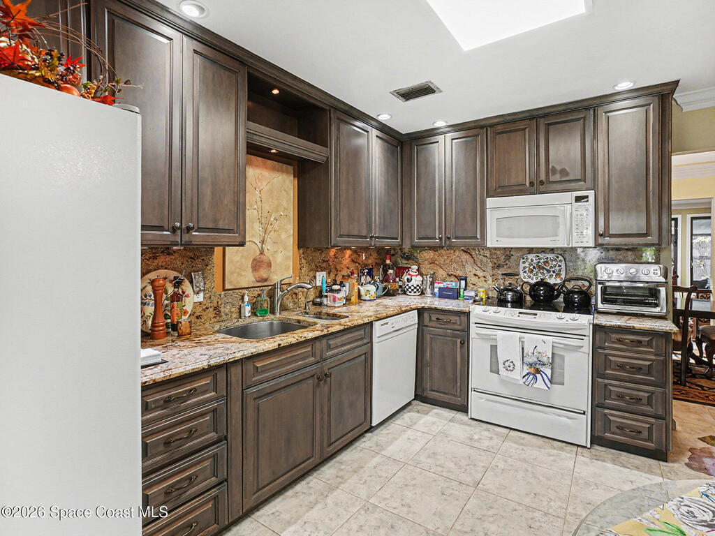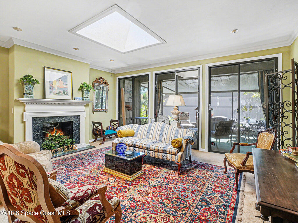 Located in the Beautiful Lake Villas Condominium Community with Lake Orienta access, this rare super 2 unit hosts a ton of character, a fantastic layout, and tasteful high end updates. The private gated terrace entry features pavers & private storage. Inside, a stunningly remodeled kitchen, featuring custom cabinets, beautiful granite countertops with matching backsplash, and an eat in nook. Dedicated dining area is elevated over the living room which features a decorative fireplace, art lighting, a massive skylight, and a large rear screened porch framed by three floor to celling sliding doors, and crown molding throughout, giving the space a grand feel. The spacious primary suite features its own open patio, bathroom with high end updates, large tiled shower, and four closets, each with custom built-ins to utilize the space efficiently. Indoor laundry, & recent mechanical updates. Relax in the pristine community pools, enjoy the lush landscape. Very inclusive HOA. Prime Location!