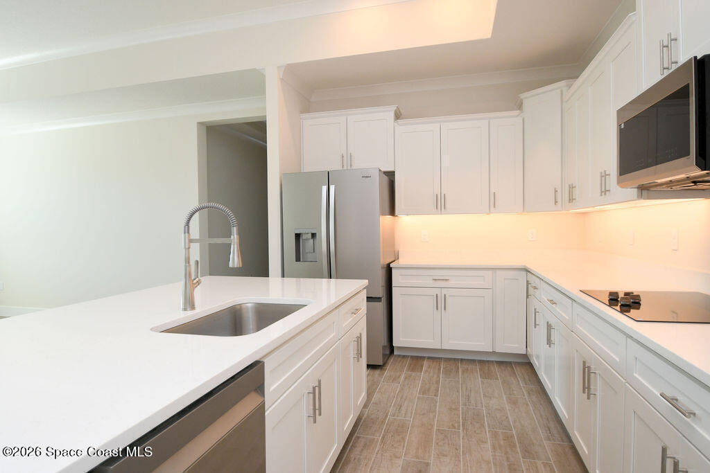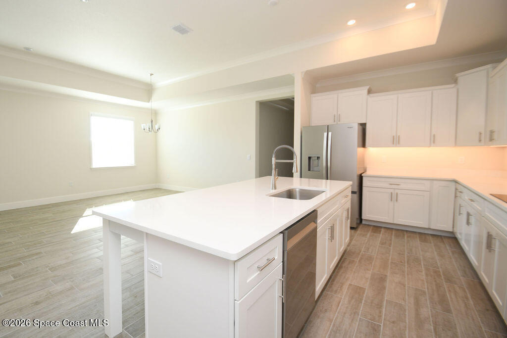 Brand new 4 bedroom home in the Vue at Satellite Beach available now! Open floor plan with gourmet kitchen featuring quartz countertops, an oversized island, stainless appliances, and a large pantry. Master suite features walk in closet, double vanity, walk in shower and separate tub. Tile in main living areas with carpet in bedrooms. Enjoy your morning coffee on screened in back patio. Community pool just around the block and only 800 ft from the beach.