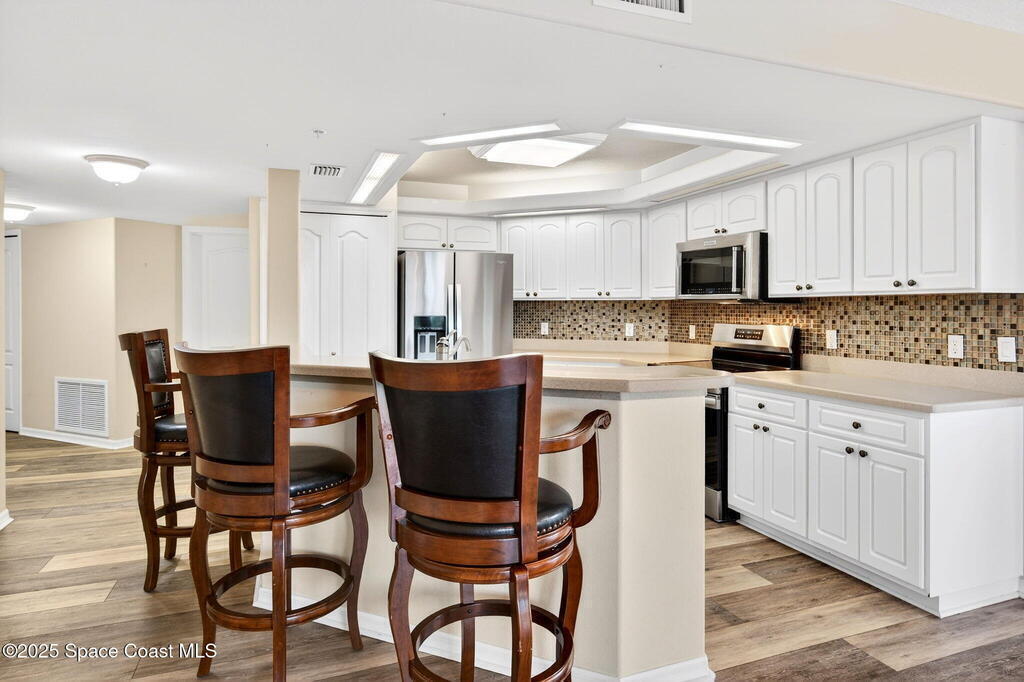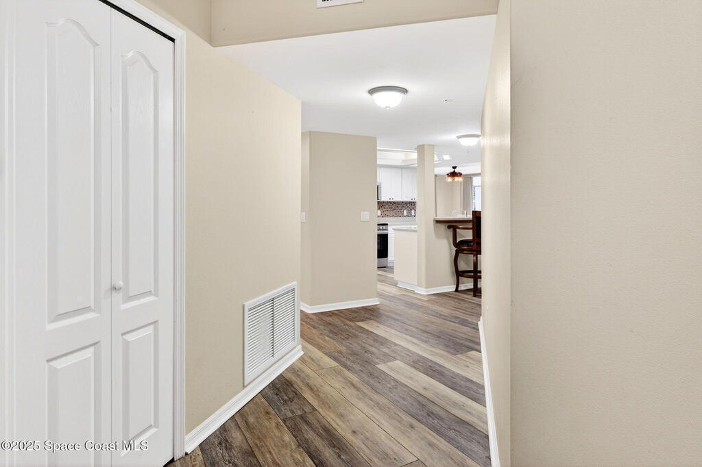 Amazing opportunity to own in Harbor Del Rio, located in the heart of Merritt Island. This well-appointed condominium offers 3 bedrooms and 2 full bathrooms, with each bedroom featuring its own private balcony access. The kitchen includes newer appliances and overlooks the open-concept living and dining areas, creating a bright and functional living space. The spacious primary suite boasts two walk-in closets, a large garden tub, and a separate walk-in shower. Community amenities include under-unit garage parking, an on-site fitness room and kitchen, and a community clubhouse with a pool, spa, and BBQ area. Conveniently located just minutes from Cocoa Beach, the Kennedy Space Center, and a short drive to Orlando. The property is also close to the new Cape Canaveral Hospital, scheduled for completion next year. Don't miss this excellent opportunity--schedule your showing today.