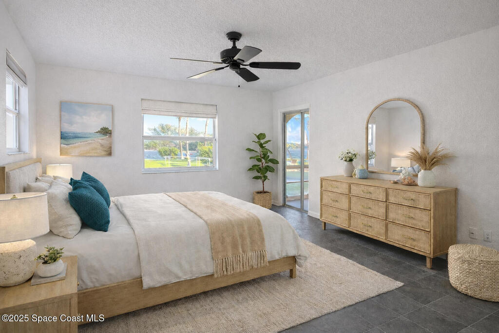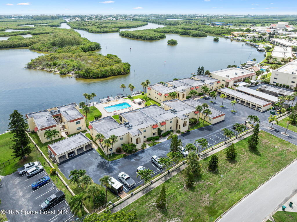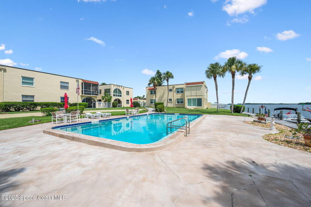 Direct riverfront, boat slips available, and a pool on the river--this one has it all! Floor-to-ceiling windows steal the show in the iconic glass-enclosed sunroom with slate-like floors. Sip your morning brew while watching dolphins cruise by, even without getting out of bed. The kitchen's larger than most with loads of cabinets, and the flexible floor plan brings in tons of natural light. Fish off the dock, fire up the BBQ, rinse off the salt at the car wash station. Covered parking and storage included. HOA covers water, cable, internet, pest control, and exterior insurance. Just minutes from Cocoa Beach's top dining, golf, the Country Club, Aquatic Center, and Racquet Club. Spanish Trace is a 20-unit hidden gem where neighbors wave, rocket launches light the sky, and the Christmas boat parade floats by your lounge chair. Resort vibes meet real life.