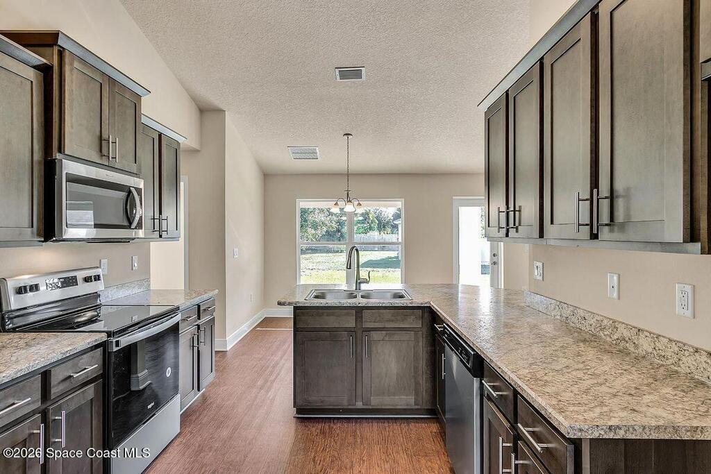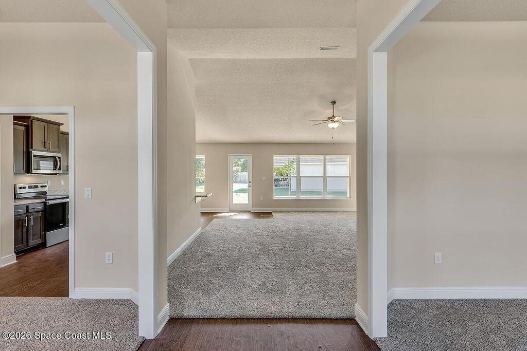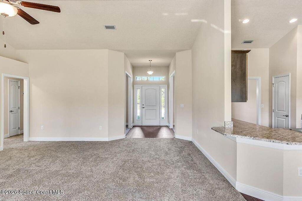 Welcome home to the popular Adams Homes 2169 floorplan. ''The family retreat house''. This 4-bedroom, 2-bath single-story home features an open-concept layout. The spacious kitchen includes ample cabinet storage, a large pantry, and generous counter space--ideal for hosting family and friends. The private owner's suite offers a relaxing retreat with a large walk-in closet and en-suite bath featuring dual vanities and a walk-in shower. Three additional bedrooms provide flexibility for guests, a home office, or playroom. Enjoy outdoor living with a covered patio, perfect for morning coffee or evening relaxation. Built with quality craftsmanship and energy-efficient features, this home delivers comfort, value, and timeless design. Own your piece of Palm Bay. No HOA and NO CDD. Only $1, 000 deposit to get started plus Seller offering closing costs paid with use of our preferred lender. Home is under construction.