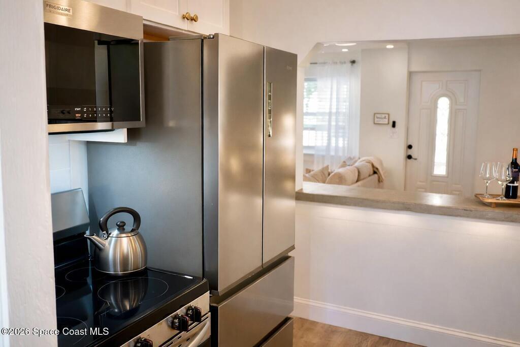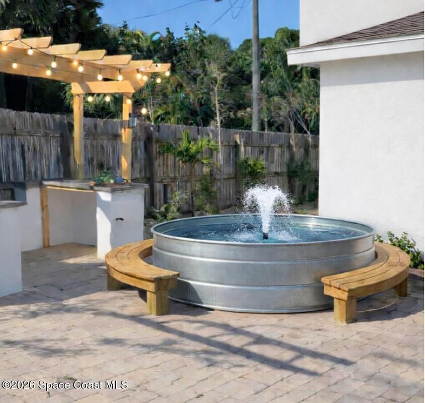 INVESTORS! Updated 4/3 coastal showstopper one block from pristine Melbourne Beach pairs a full separate guest suite and trendy heated cowboy pool with refined, resort-style outdoor living just steps from the ocean. Close to the action, yet calm and peaceful inside with a luxury interior and private fenced backyard retreat.The interior features elevated design with new luxury vinyl flooring, updated kitchens with hand-finished cement countertops, updated bathrooms with micro-cement showers and tub surround, new interior doors, soft Alabaster paint, updated lighting, and thoughtful design details throughout.Outdoor living is exceptional, showcasing an expansive wood patio, heated cowboy (stock tank) pool with wood decking, outdoor shower.This home also has an attached garage, freshly painted roomy shed, and Boat or RV Parking. Whether you're seeking a coastal residence, second home, or in