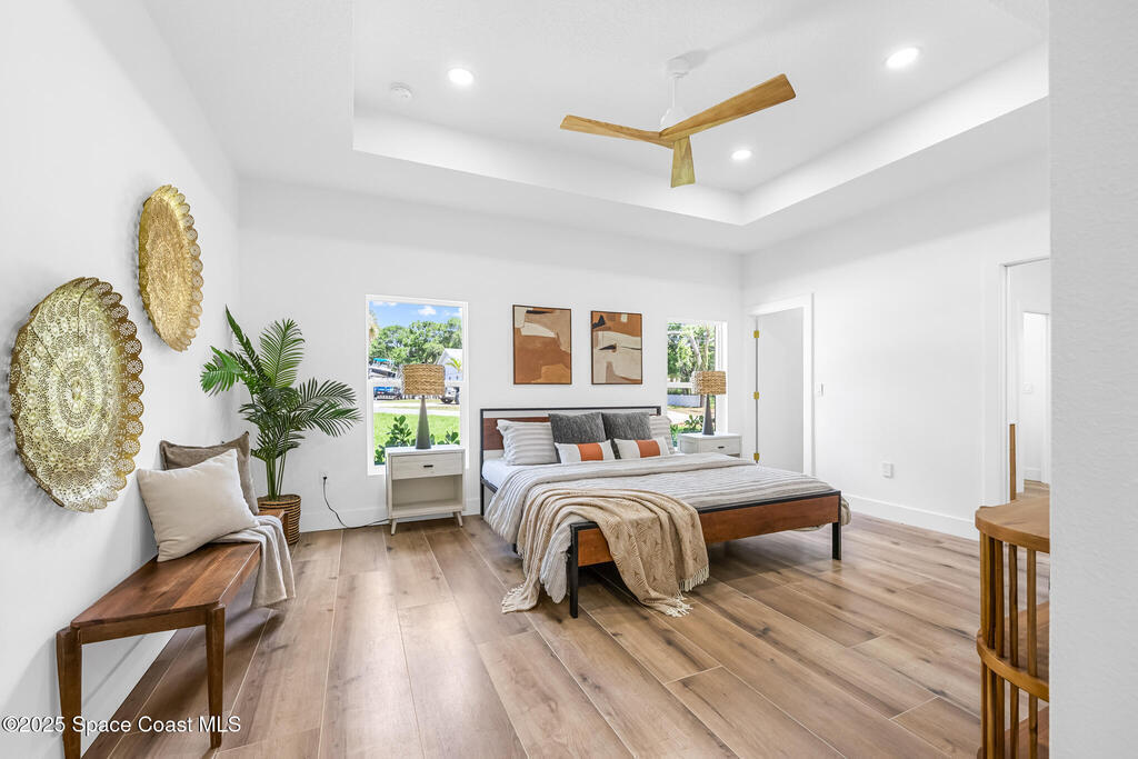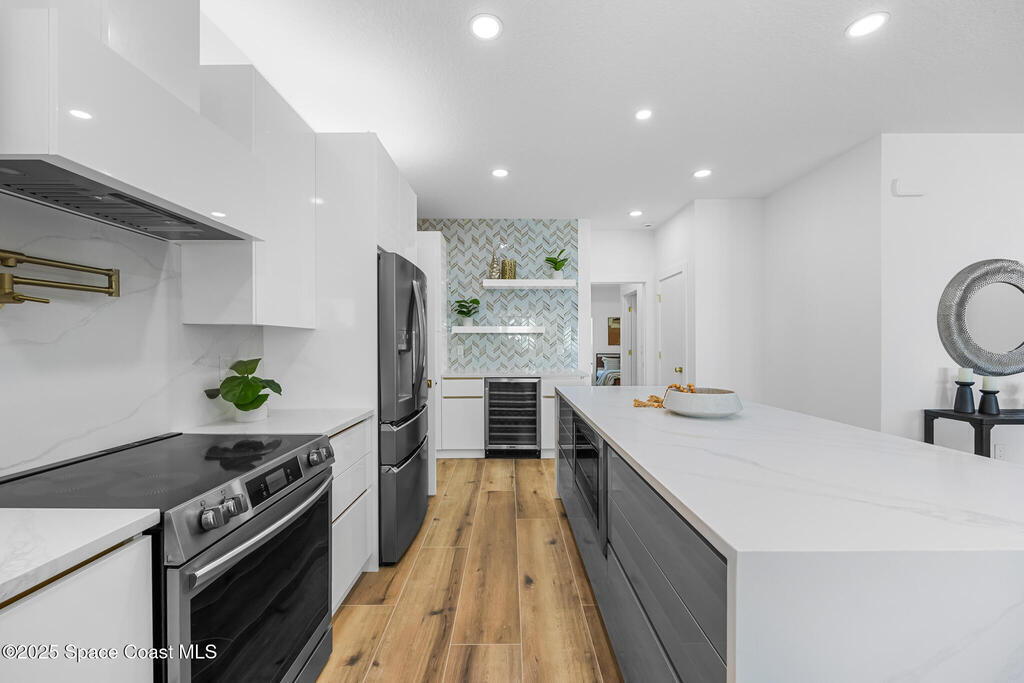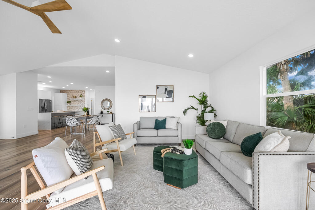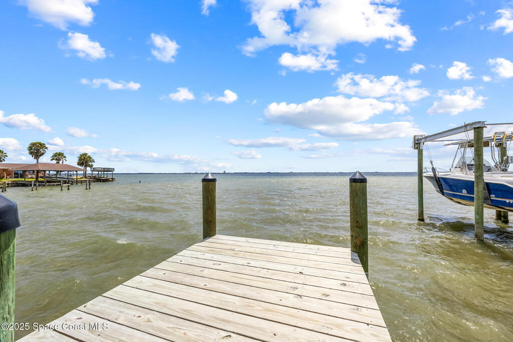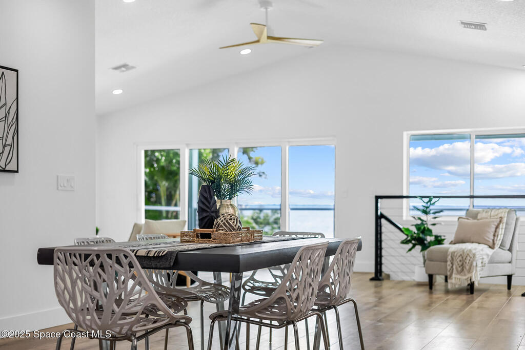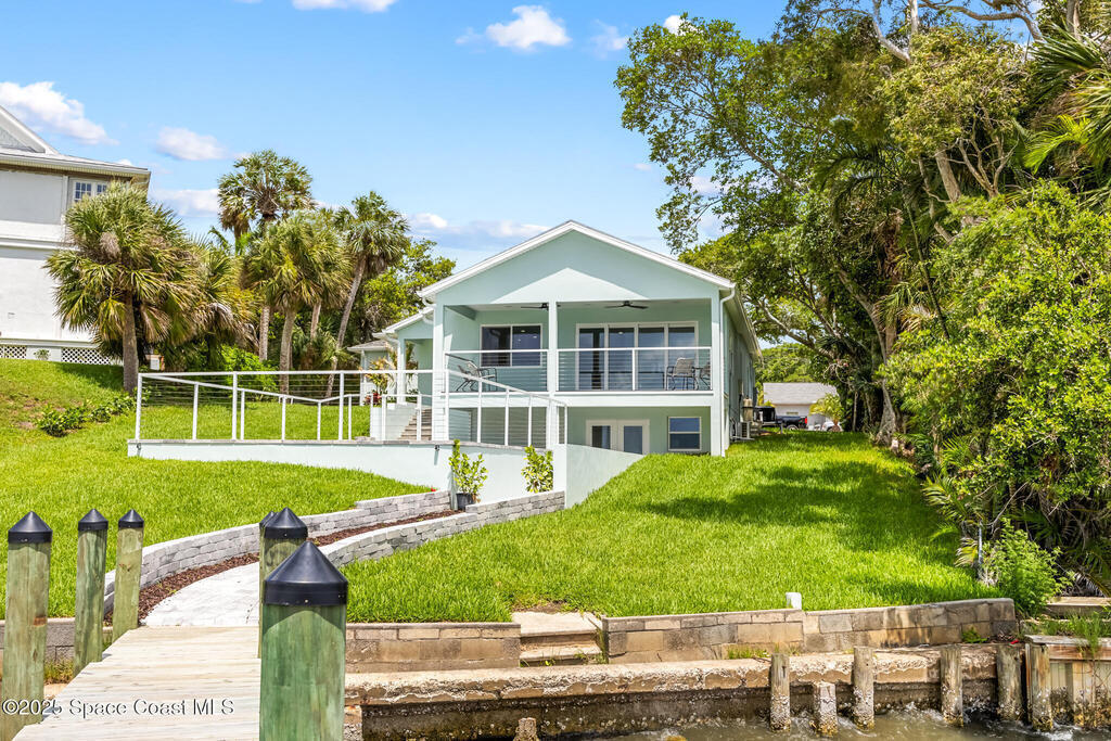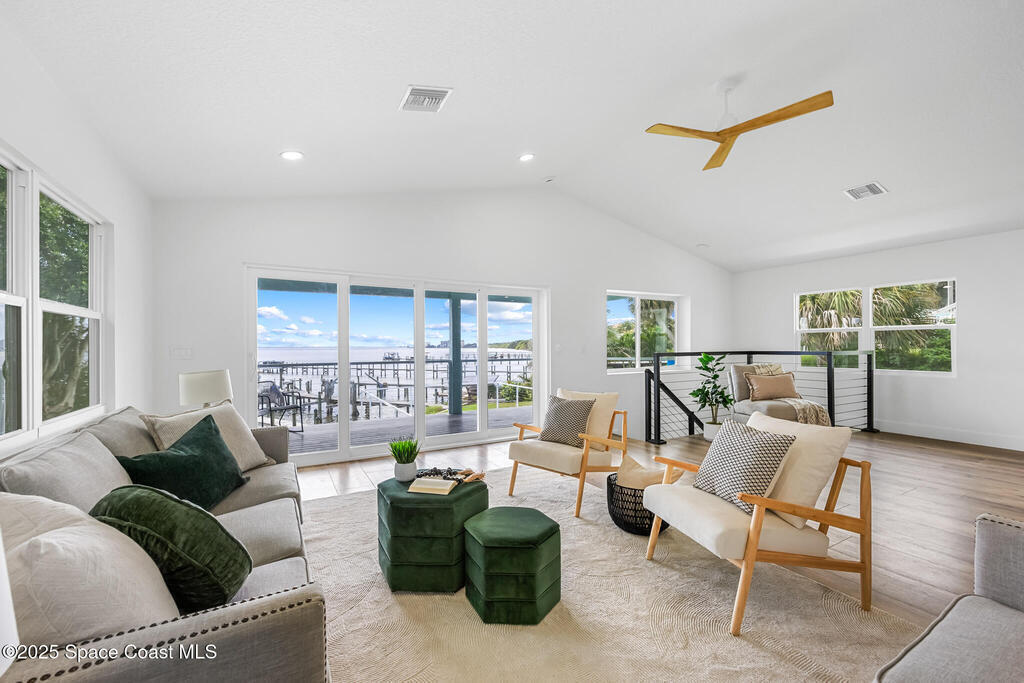 Receive $10k for rate buy down or closing costs with preferred lender! Every inch of this riverfront masterpiece has been reimagined for luxury Florida living. Taken down to the block and fully rebuilt with a 2025 effective age, this home is brand new from top to bottom.Set along the tranquil shores of the Indian River with a private dock, this 3-bedroom, 2-bath residence PLUS oversized bonus room offers over 2, 400 SF of inspired living and a sparkling brand-new pool (2025)--perfect for sunset swims and weekend gatherings. The thoughtful two-story design maximizes both function and views. Welcoming vaulted ceilings, tile flooring, and abundant natural light highlight the open-concept living spaces. The living room's triple slider frames breathtaking river views and flows seamlessly into the chef's kitchen, complete with custom soft-close cabinetry, quartz waterfall island, built-in stainless appliances, wine cooler, and designer backsplash.
