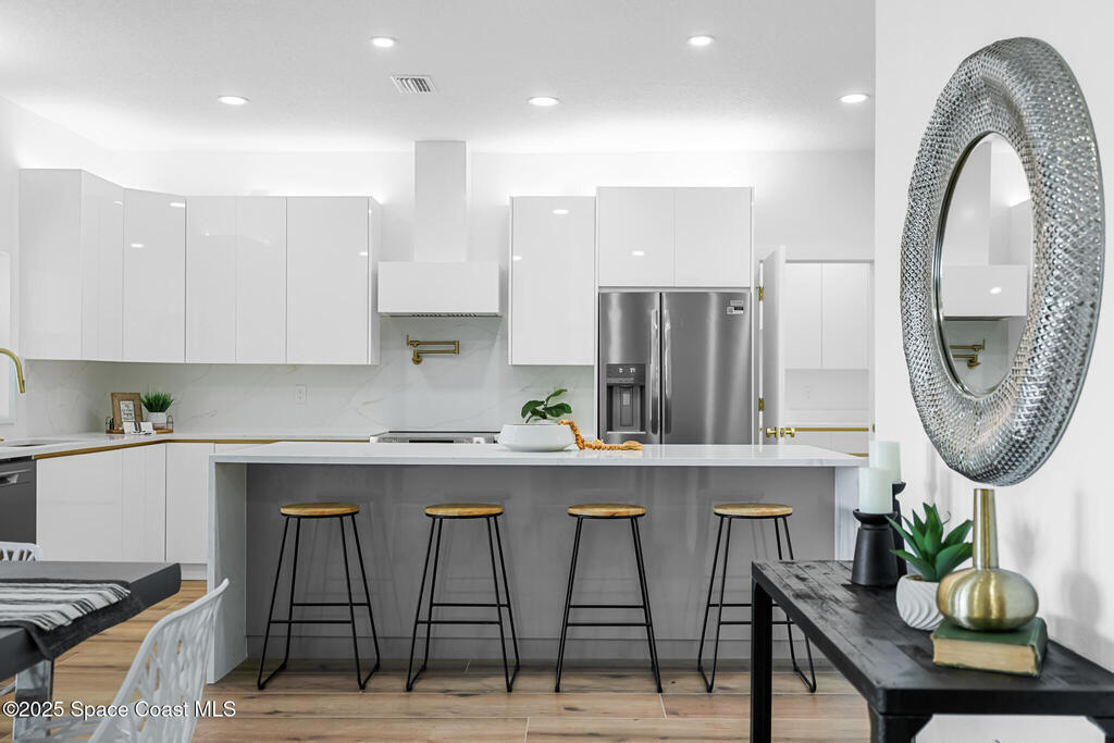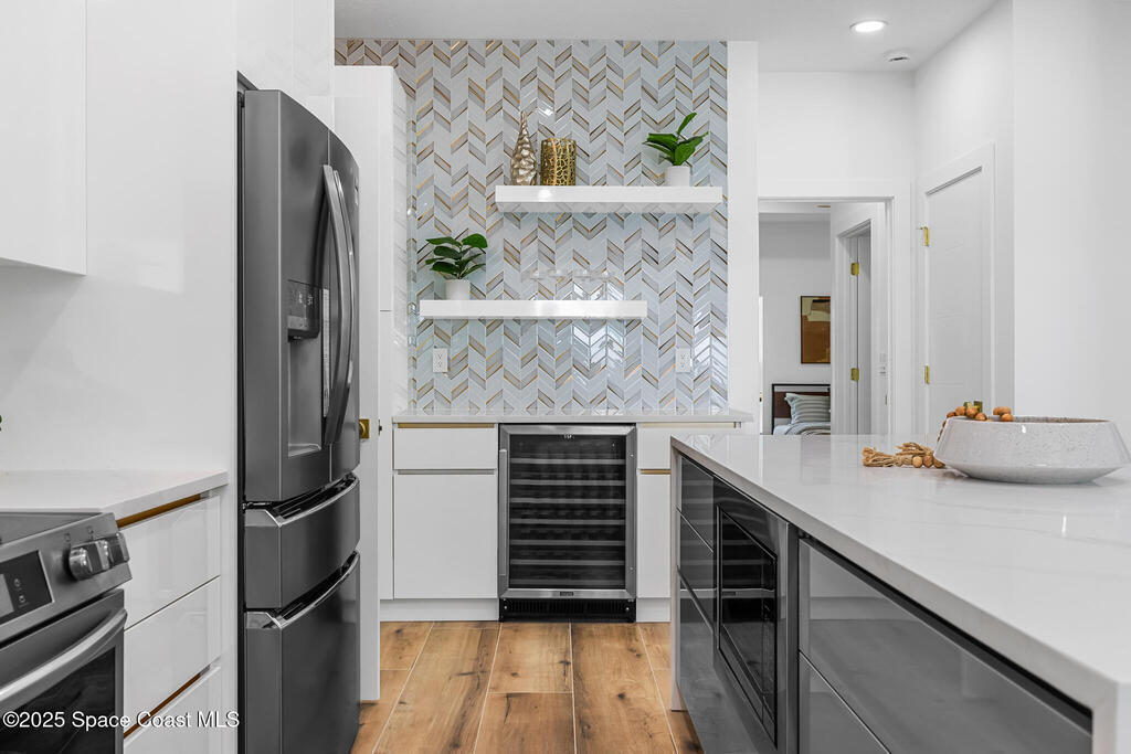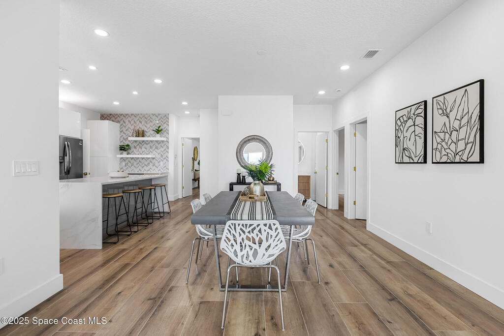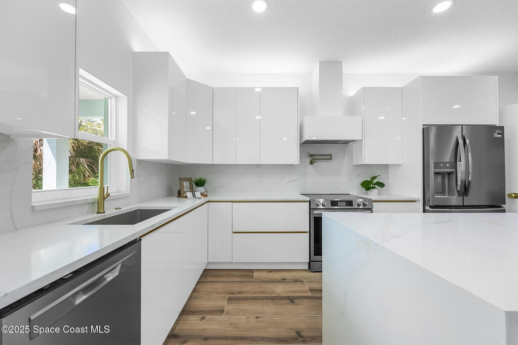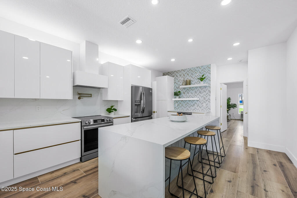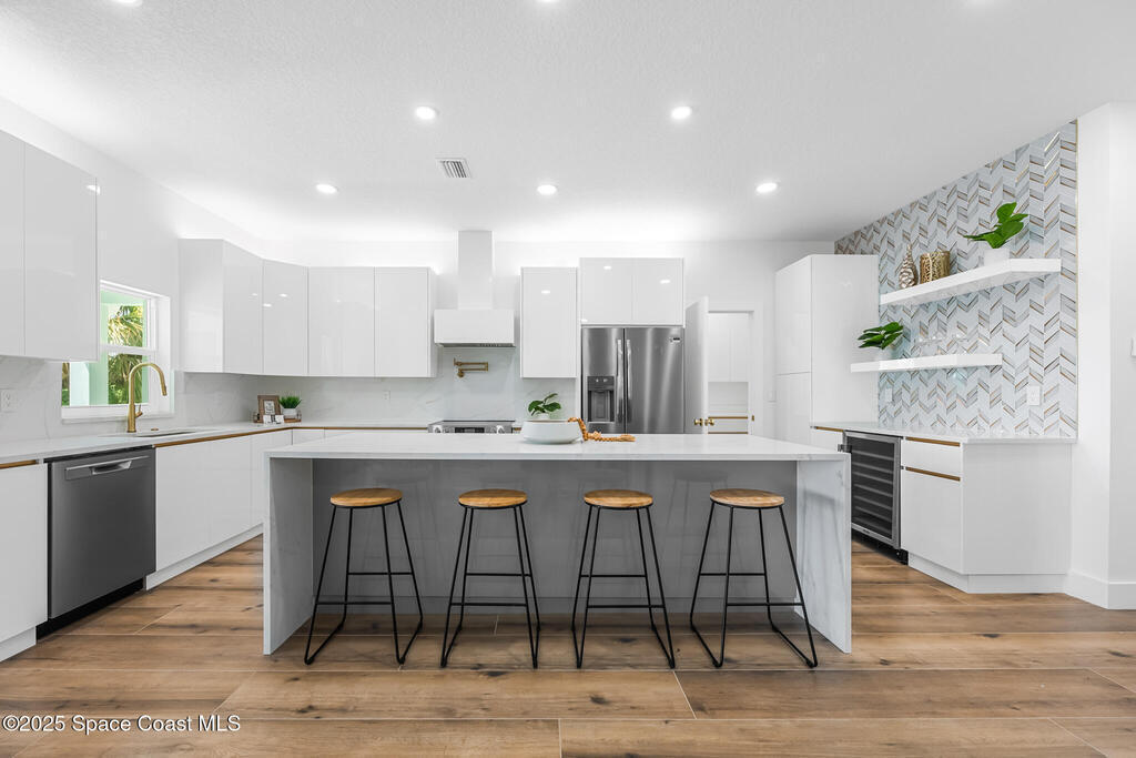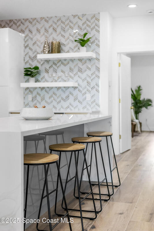 Receive $10k for rate buy down or closing costs with preferred lender! Every inch of this riverfront masterpiece has been reimagined for luxury Florida living. Taken down to the block and fully rebuilt with a 2025 effective age, this home is brand new from top to bottom.Set along the tranquil shores of the Indian River with a private dock, this 3-bedroom, 2-bath residence PLUS oversized bonus room offers over 2, 400 SF of inspired living and a sparkling brand-new pool (2025)--perfect for sunset swims and weekend gatherings. The thoughtful two-story design maximizes both function and views. Welcoming vaulted ceilings, tile flooring, and abundant natural light highlight the open-concept living spaces. The living room's triple slider frames breathtaking river views and flows seamlessly into the chef's kitchen, complete with custom soft-close cabinetry, quartz waterfall island, built-in stainless appliances, wine cooler, and designer backsplash.