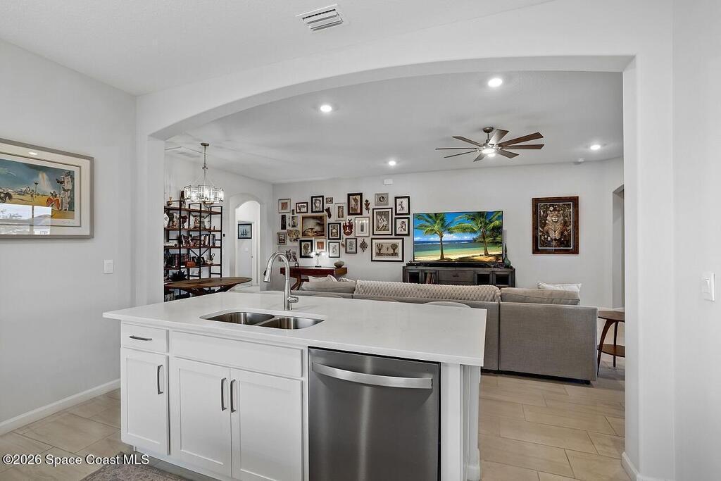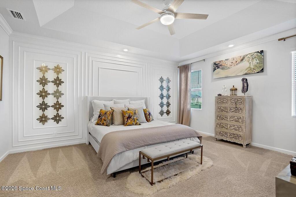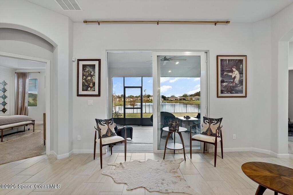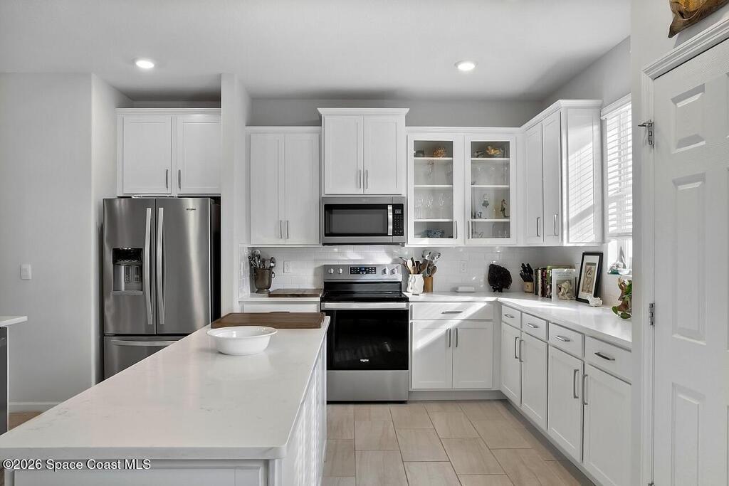 Better than new! Built in 2023 with $30, 000+ in upgrades, this 3BR/3BA home with a 3-car garage features impact windows and doors throughout. Enjoy a screened epoxy patio overlooking a fenced yard with lake and fountain views (plenty of room for a pool). The kitchen offers double islands, quartz countertops, stainless steel appliances, pantry, and breakfast nook. The primary suite stuns with a tray ceiling and two custom walk-in closets. Additional upgrades include epoxy garage floor, gutters, screened front porch, and quartz bath vanities. Gated community, low HOA, central location--don't miss it!