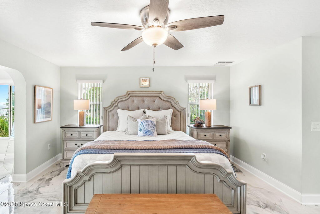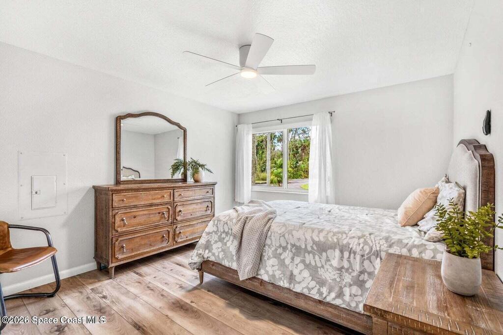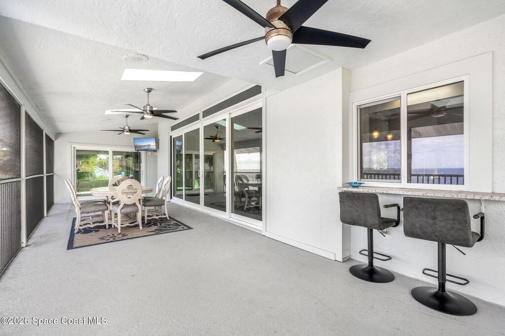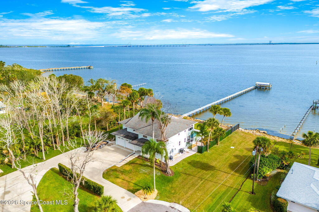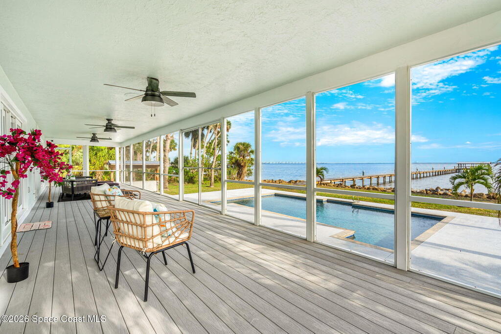 OLD FLORIDA RIVERFRONT ESTATE WITH POOL & BOAT LIFT NOW FOR LEASE!!! Delivers million-dollar Indian River views, unforgettable sunsets, & front-row seats to Space Coast rocket launches. Located just 2 miles south of NASA Causeway on a private gated road, the 4-bedroom, 3.5-bath home with 3-car garage was built in 1986 offering 3, 016 sq. ft. under air (4, 776 sq. ft. under roof) on a .68-acre lot with approx. 125' of direct river frontage. The main living level centers around a spacious gathering area flanked by three bedrooms & two full baths, opening to a stunning 648 sq. ft. screened riverfront patio overlooking the heated, natural-bottom pool & wide-open water views. Outdoor amenities include a wet bar, private dock and boathouse (approx. 300'), & direct river access. Offered partially furnished with core furnishings, with flexibility to remove select items if tenant prefers. Options: 6-car detached garage available for an additional $500/month. Experience Indian Riverfront living.