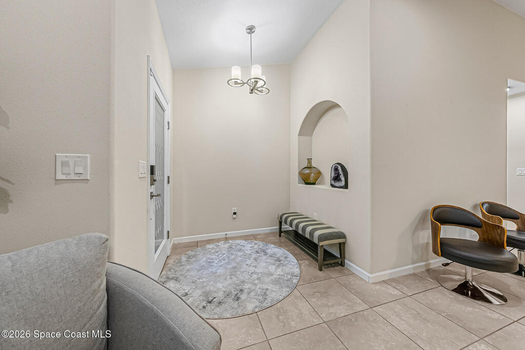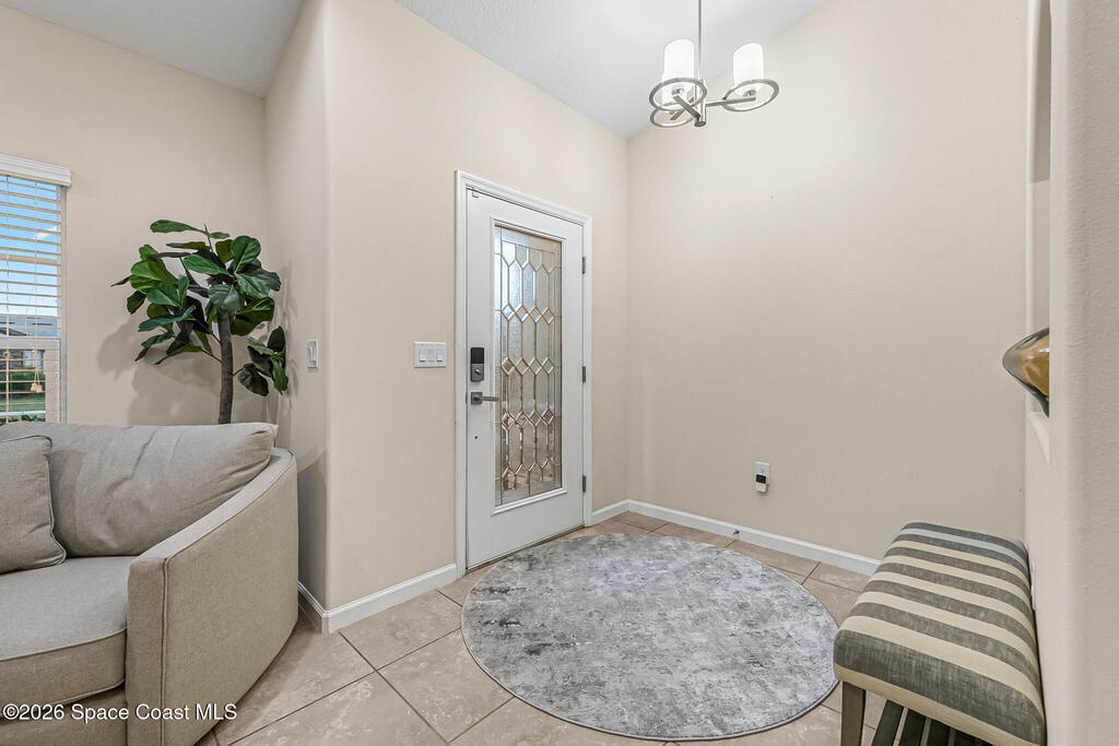 Beautifully upgraded & move-in ready! This furnished Bayside Lakes home sits near a quiet cul-de-sac, backing to a canal with full privacy fencing. Manicured landscaping and a paved side walkway add curb appeal. Inside, enjoy formal living & dining, tile throughout, and updated energy-efficient appliances including a double oven. Bedrooms feature new carpet and modern lighting. The spacious primary suite boasts tray ceilings, walk-in closet, separate tub & shower, and access to a bonus room (office/nursery/bedroom). The extended paver lanai is fully screened with partial roof cover, overlooking a lush backyard. Bayside Lakes offers a second recreational area with pool, clubhouse, exercise room, basketball, tennis & pickleball courts, playground, walking trails, and RV storage (fee/availability). Close to shopping, dining, medical, and schools. Don't miss this exceptional home!