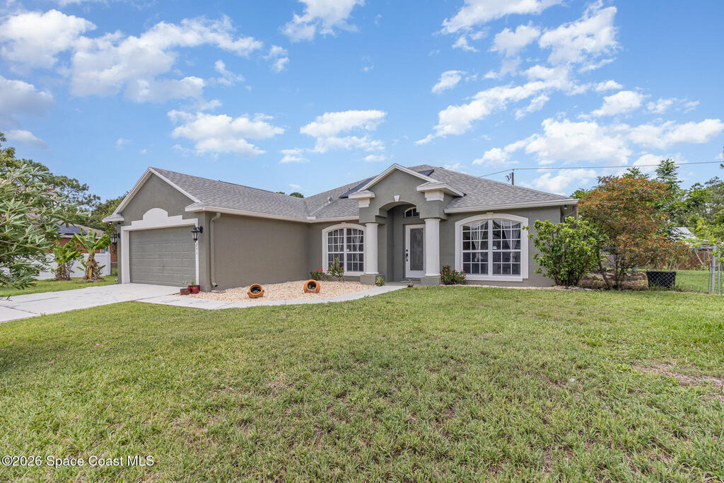 Live off the land in this Tropical Oasis! 4-bedroom, 2-bath pool home on a double lot totaling .46 acres, fully fenced with sprinkler system. Enjoy Florida living with a SCREENED POOL & WHOLE HOUSE SOLAR. Caribbean-inspired edible landscaping, and plenty of room to roam with no HOA. Step through the etched-glass front door into a spacious formal living and dining area. The vaulted-ceiling kitchen offers generous space and opens to the family room, perfect for entertaining. French doors lead to a covered lanai overlooking the pool and tropical backyard with fruit-bearing trees and edible plants (see document tab for full list). Split Floor-plan with 4 spacious bedrooms and indoor laundry. Major updates include Roof 2018, HVAC 2019, Water Heater 2024, Well Pump 2024, Dishwasher 2025. Your new home awaits - make it yours today!