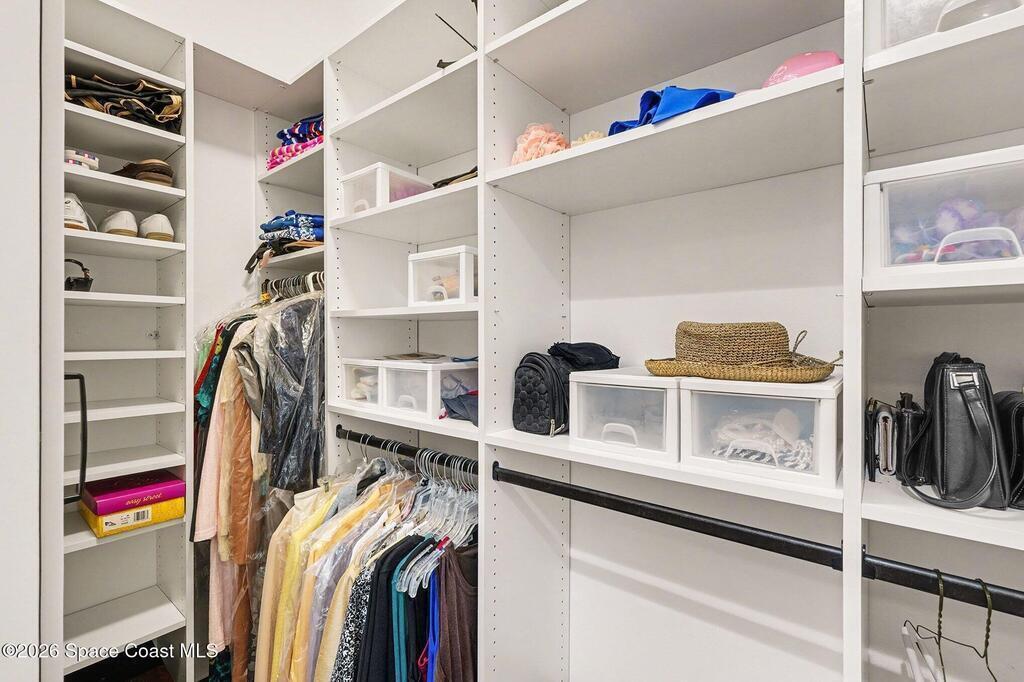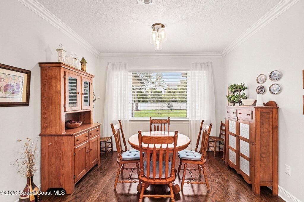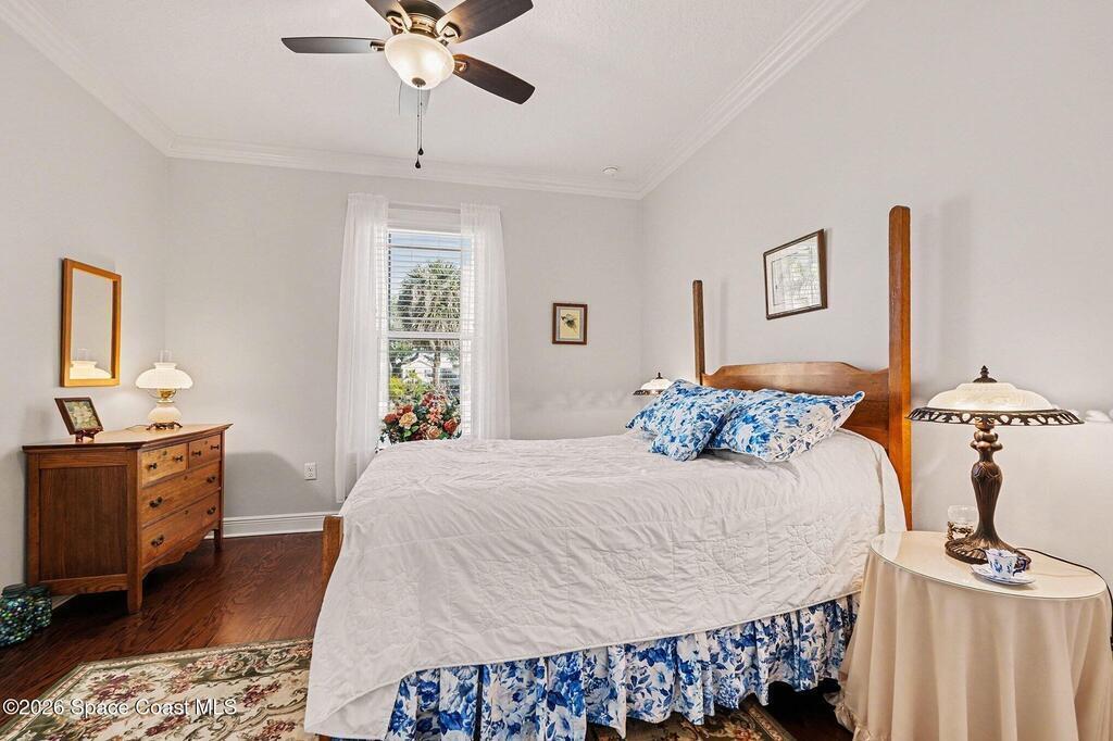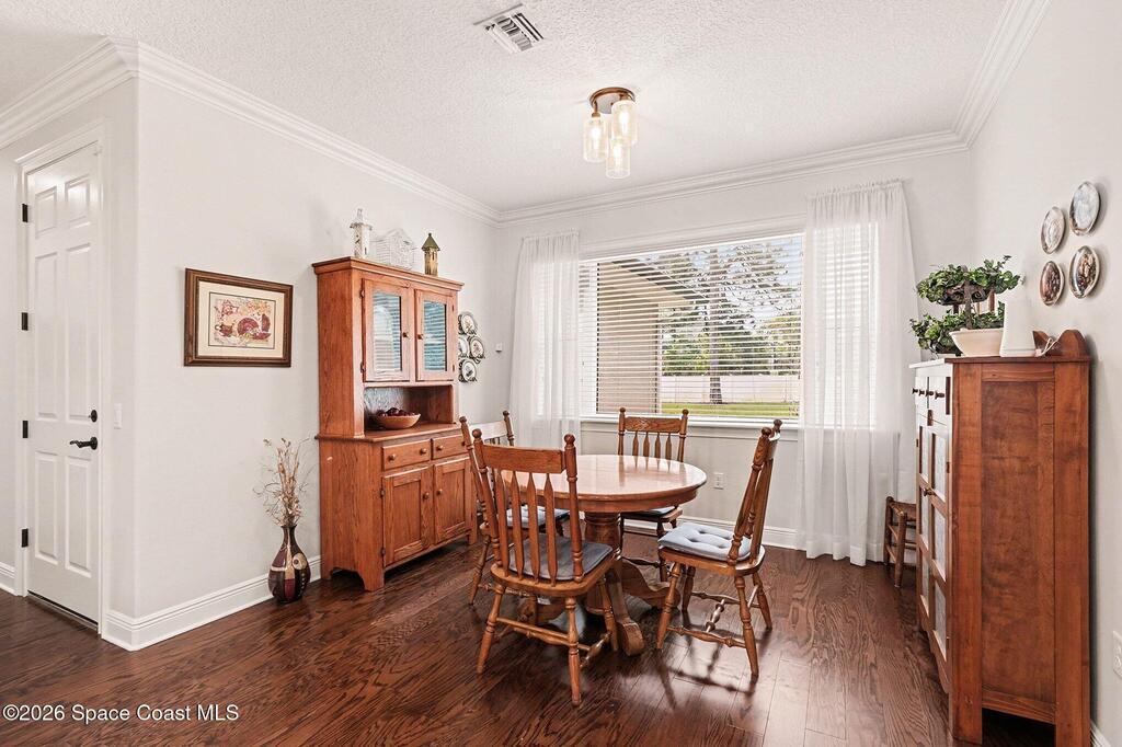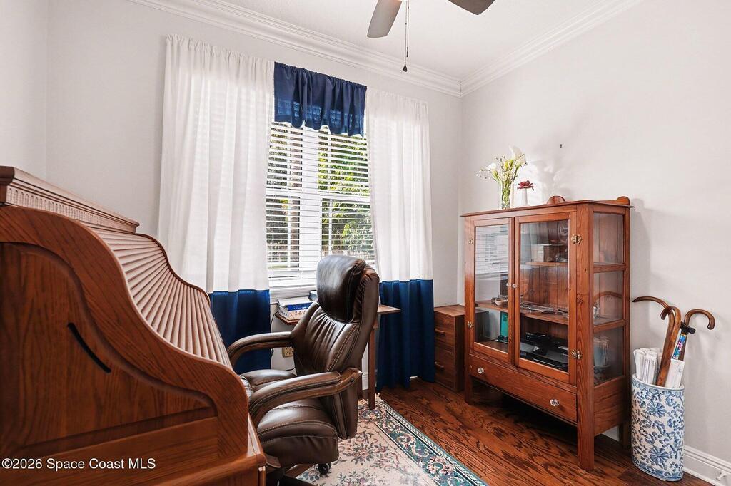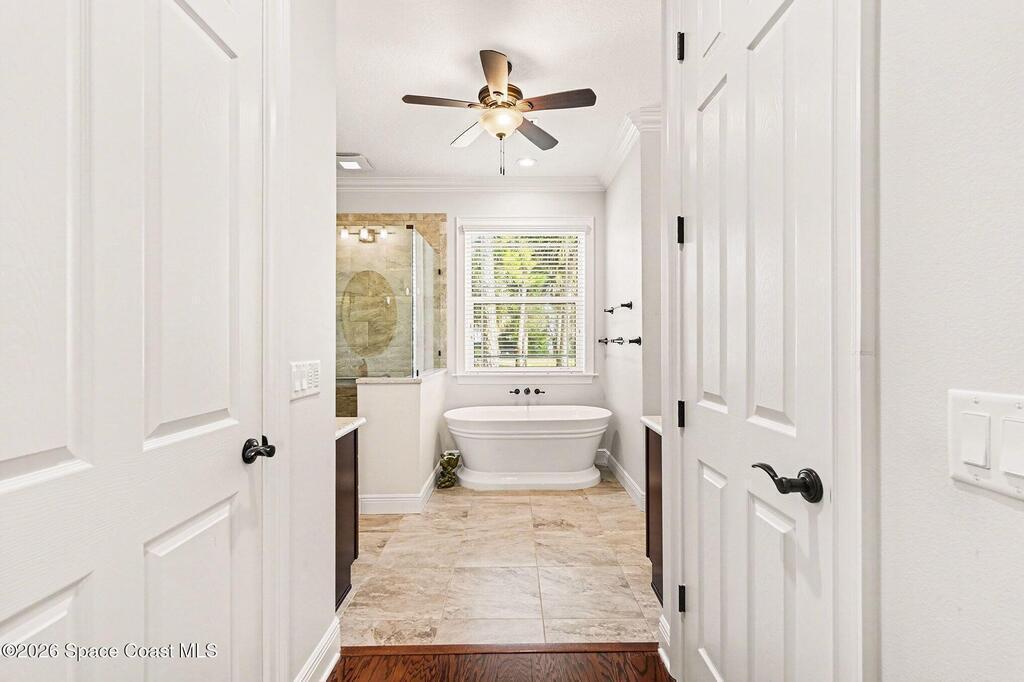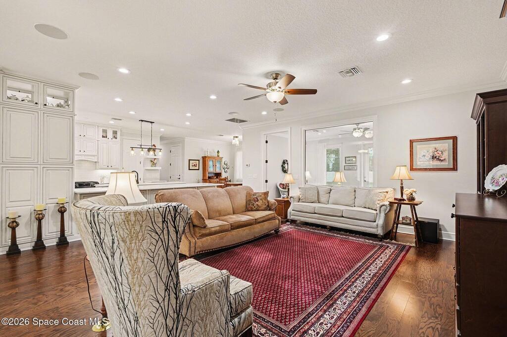 Custom-built in 2021, this beautifully designed 3-bedroom, 3.5-bath home sits on a private .78-acre lot in Titusville, Florida, near the Indian River and Space Coast amenities. The split floor plan features a metal roof, hurricane impact windows, and a whole-house natural gas Generac generator for seamless power. Open-concept living includes formal dining, great room, sunroom, breakfast bar, and nook with 9' ceilings and 8' doors throughout. The chef's kitchen offers quartz countertops, a large island, walk-in pantry, pull-out cabinetry, and a natural gas range with exterior-vented hood. The primary suite includes an attached office, dual walk-in closets, soaking tub, separate shower, and dual vanities. Additional features include a second office, large indoor laundry room, central vacuum, two HVAC systems. 2-car garage with epoxy floors. Detached climate-controlled workshop with impact windows, epoxy floors, carport, and pavered drive and walkways. Check out the video!