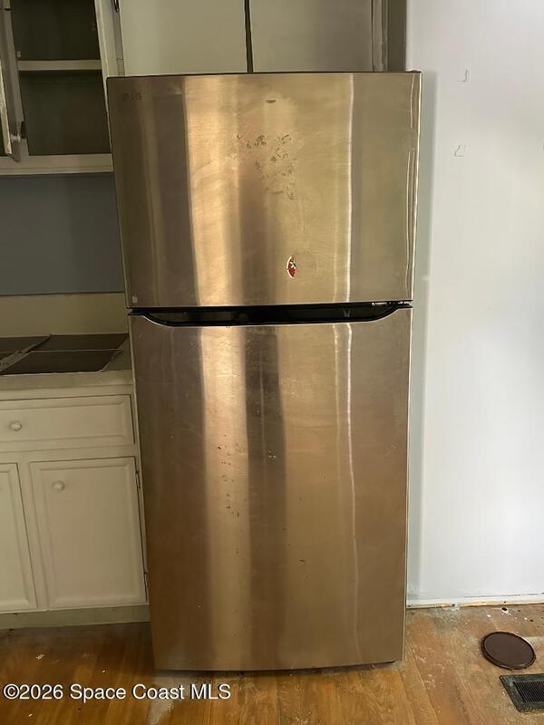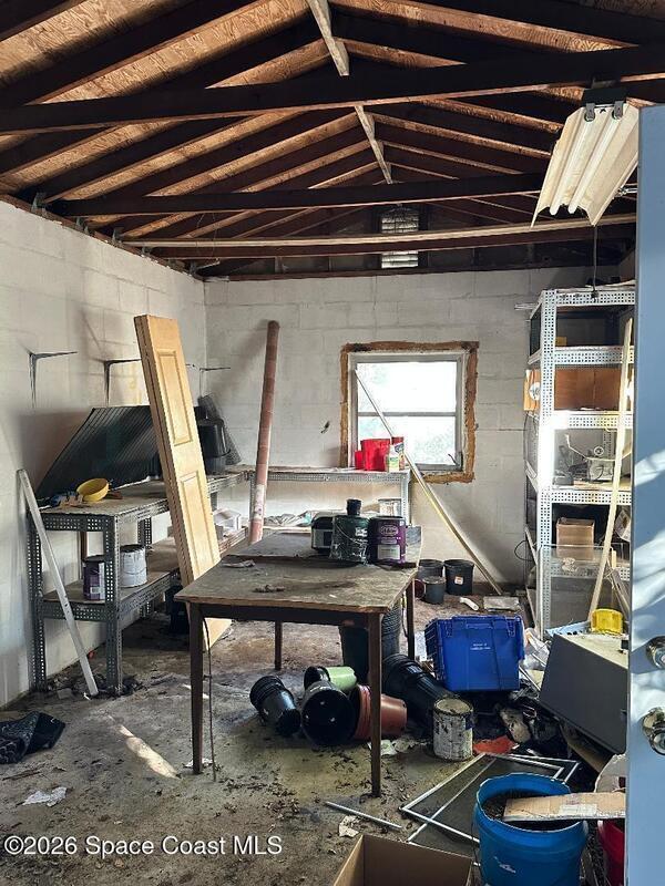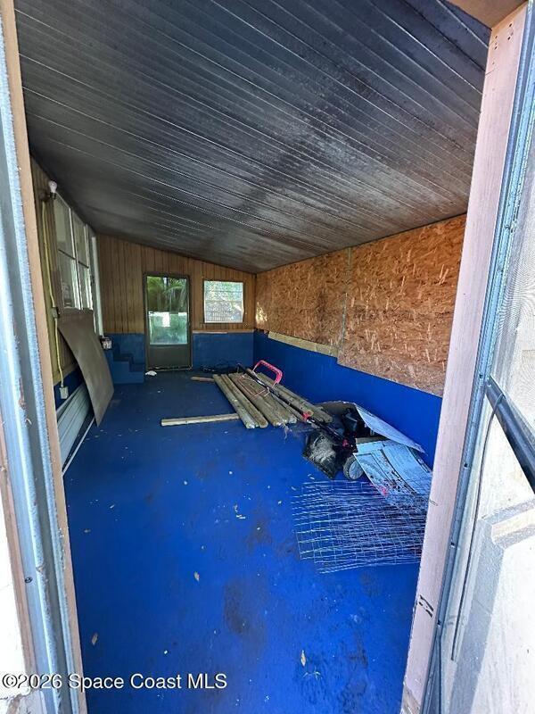 Handyman special--an opportunity to make it your own. This 4-bedroom, 2-bath modular home offers a flexible layout with a split floor plan, a spacious living room, and a step-down bonus room that adds extra versatility. The home includes newer appliances and provides a solid starting point for updates and customization. The property also features a detached 264-sq-ft concrete block building, plumbed for laundry and ideal for storage, a workshop, or future use. The existing layout allows for the possibility of combining rooms to create a larger primary suite while still maintaining ample guest space. Additional highlights include a fenced yard, poured concrete driveway for convenient parking, and a quiet cul-de-sac location in North Merritt Island.