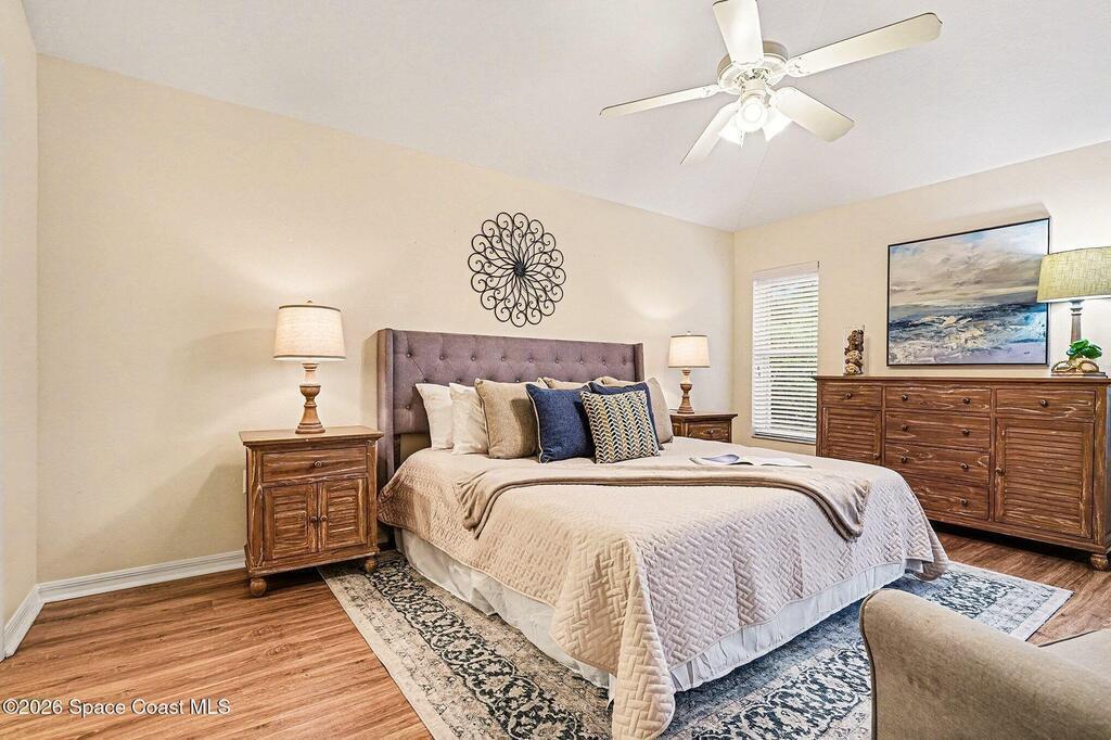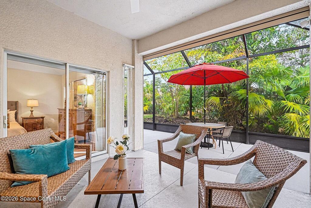 Simplify your life and reduce your energy bills!! Enjoy your own private tropical paradise in the most prestigious, sought after 55+ resort style, maintenance free community nestled in the heart of Viera! This one of a kind solar temperature controlled home and lifestyle can be yours. Granite countertops, water treatment system, solar panels, screened entry way, accordion storm shutters and extended screened lanai overlooking a tropical oasis are just the beginning. You will love the split floor plan! 4beds, 3 baths vaulted ceilings and spacious eat-in kitchen, breakfast bar, family room, master bedroom suite, walk-in closet and large master bath with zero threshold shower entry. Enough room for everyone and everything. Home backs up to mature landscaping for a very private space. HOA includes Lawn Maintenance, exterior paint of house scheduled this year, 22, 000 sq.ft.Clubhouse with gym, Resort Heated Pool/Spa, Tennis, Shuffleboard, Basketball, Bocci, Billiards, Island Grill + much more.
