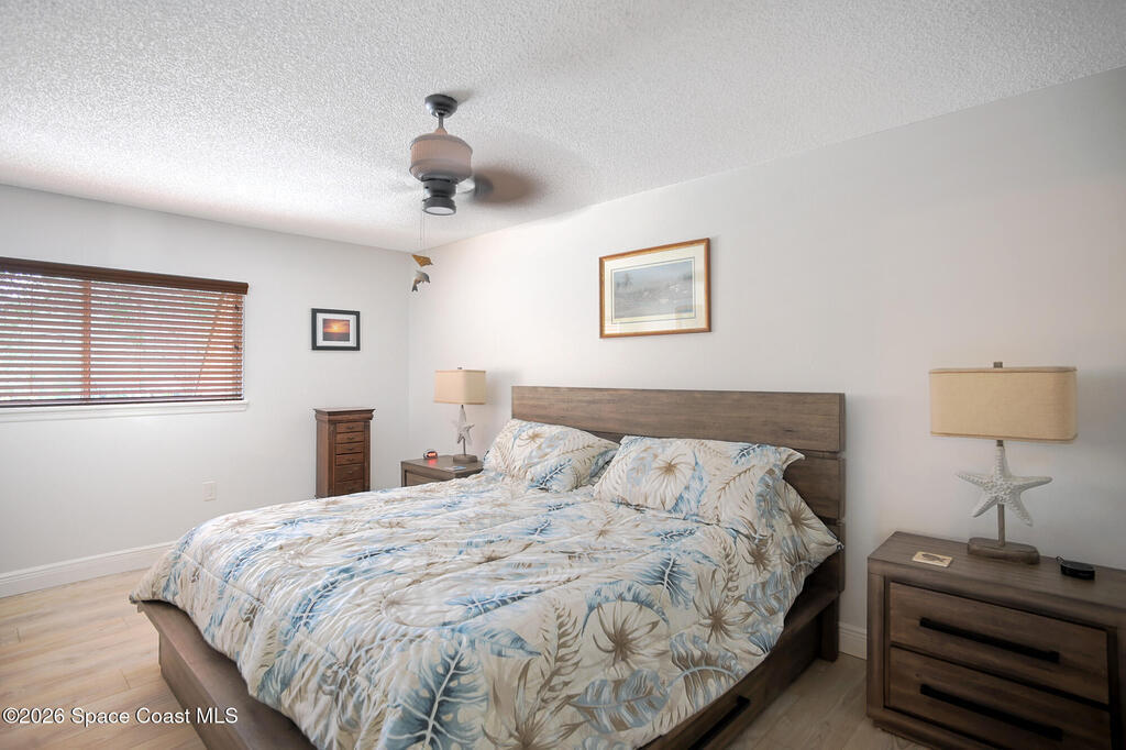 Welcome to Treetop, where you are surrounded on three sides by a natural, protected hammock preserve with walking and hiking trails, leading from A1A to the Indian River. Well maintained unit in a quiet gated private oak hammock. Ocean access 2 blocks to the end of the street. Move in ready, 2 large bedrooms with updated baths, walk in showers 1 downstairs and 1 up. Walk-in closet, Laundry area downstairs, 400 sf wrap around covered screen porch with entrance to open living, dining and kitchen area, vaulted ceilings, vinyl plank flooring. Large 2nd floor loft area overlooks downstairs. New A/C system Pet friendly HOA covers building insurance, roof, swimming pool and small boat storage HOA docs available through the website https://www.treetopvillagecondo.com/public-documents
