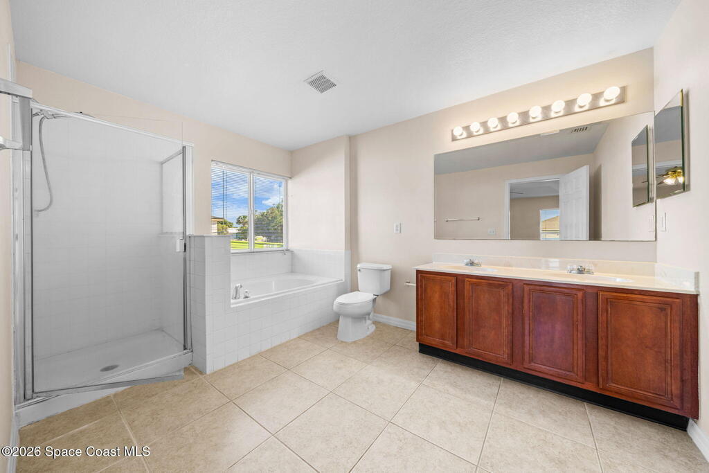 Ceiling Fan(s), Kitchen Island, Primary Bathroom -Tub with Separate Shower, Primary Downstairs, Split Bedrooms, Walk-In Closet(s)