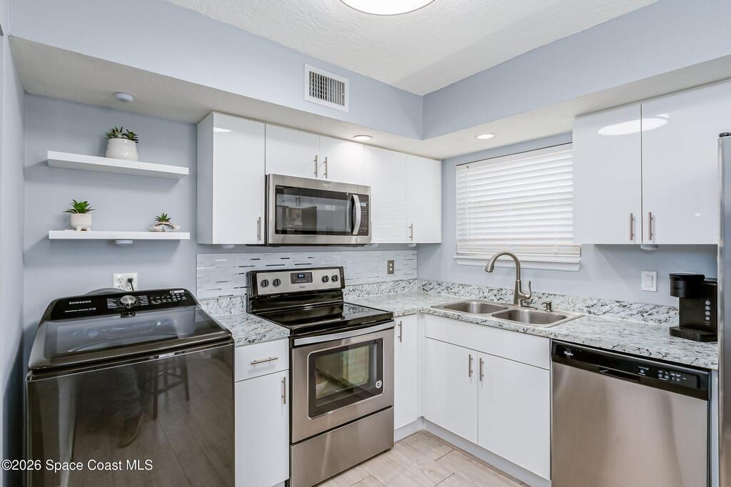 🏡 Motivated Seller - Bring Offers! Beautifully updated 3-bedroom, 2-bath concrete block, one-story retreat where modern comfort meets true Florida freedom. ✅With a 2018 roof, 1 year old HVAC and hot water heater plus impact glass, this move-in-ready home offers peace of mind and stylish living. Enjoy contemporary finishes, an updated kitchen with new cabinetry, countertops, and stainless appliances, plus washer and dryer included. The primary suite features French doors and a walk-in closet. No HOA or Rental Restrictions = Rare Flexibility for homeowners and investors alike. A side-entry carport adds convenience, security, and future expansion potential. Outside, the fully fenced backyard offers a patio, mature shade trees, storage shed, and room for a pool--ideal for relaxing or entertaining.📍Located in a sidewalk-safe neighborhood just minutes from Captain's House boat launch, the Indian River, shopping, dining and South Brevard beaches.