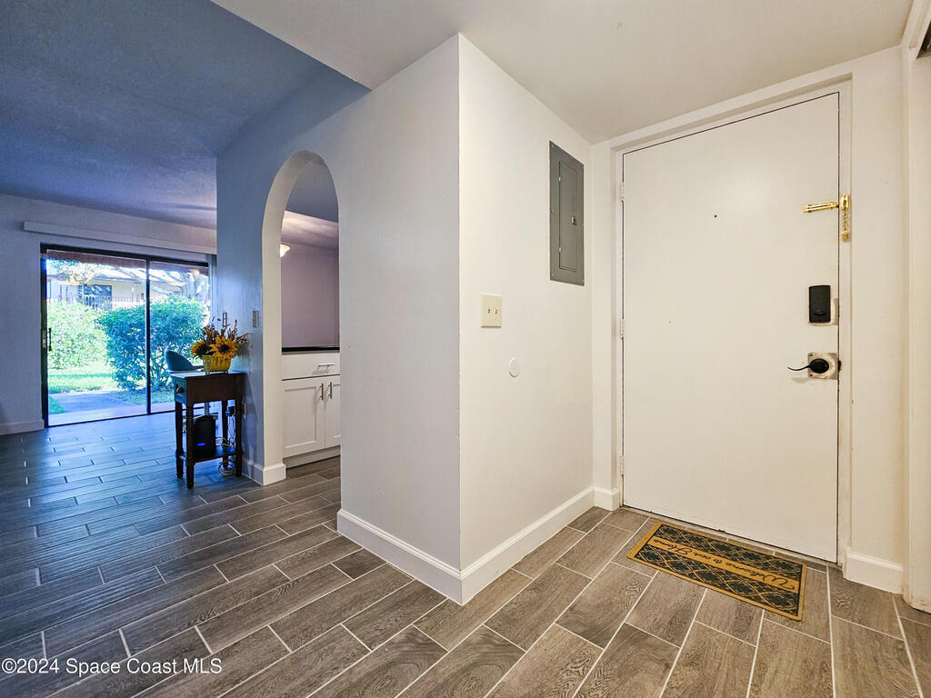 Utilities included with this annual rental (including basic cable). First floor one bedroom unit close to the community pool, mail area, and laundry room. Beautifully renovated bathroom and updated kitchen with granite countertops. Spacious open living room, dining area and kitchen; lots of natural light, and sliders going to the back patio where you'll find an extra storage space. Just minutes to the heart of EGAD (Eau Gallie Arts District) and/or over the causeway to the beach!