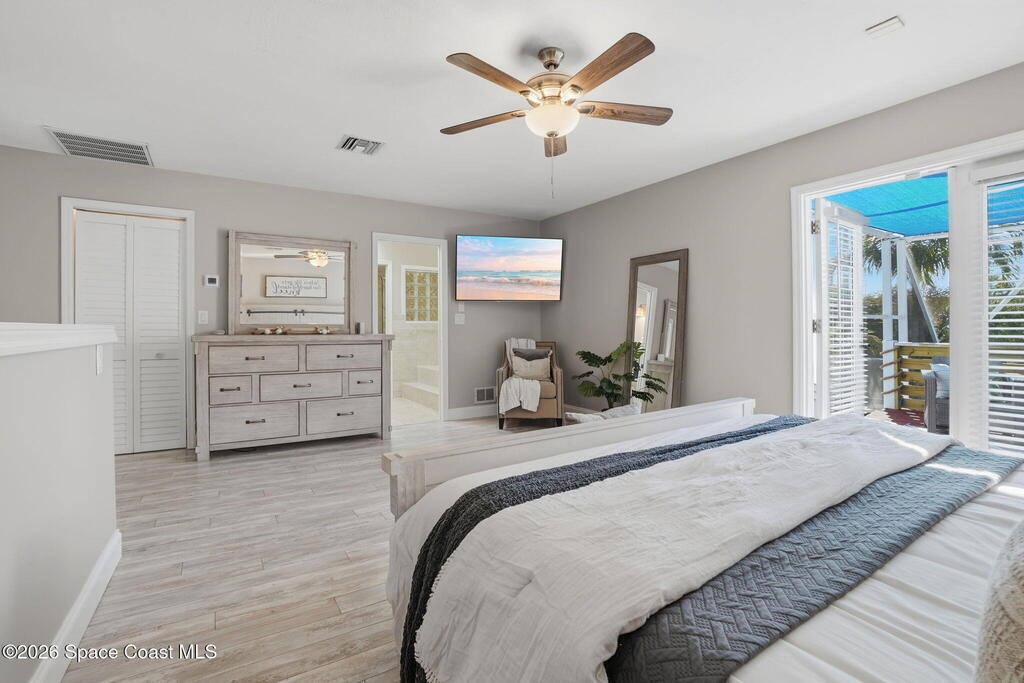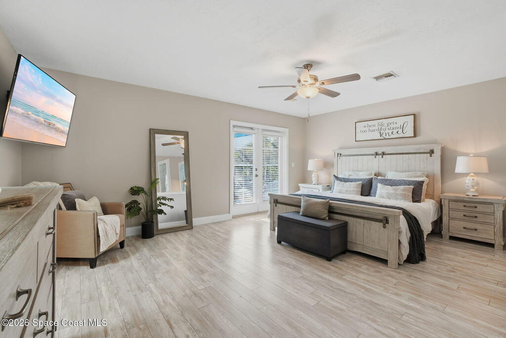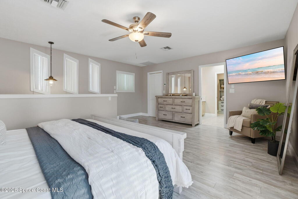 Wake up to the rhythm of the ocean in this beautifully maintained 4BR/3BA home in the guarded, gated Sanctuary community just a short walk to the beach. Thoughtfully designed for coastal living, enjoy your own saltwater screened-in pool oasis with new pavers, upgraded landscaping and a cozy firepit perfect for s'mores and sunset memories. The split floor plan offers flexibility for family and guests with a private in-law/guest suite, while each generously sized bedroom easily accommodates a king-size bed, providing comfort and space for all. The upstairs owner's suite features a private balcony to sip morning coffee and listen to the surf. Gather in open living spaces, relax by the pool or enjoy community amenities including clubhouse, courts and scenic paths. Oversized garage fits a golf cart and includes a 220vault outlet for EV charging. A home where beachside memories are made, and every day feels like a vacation.Seller is a licensed FL Realtor.