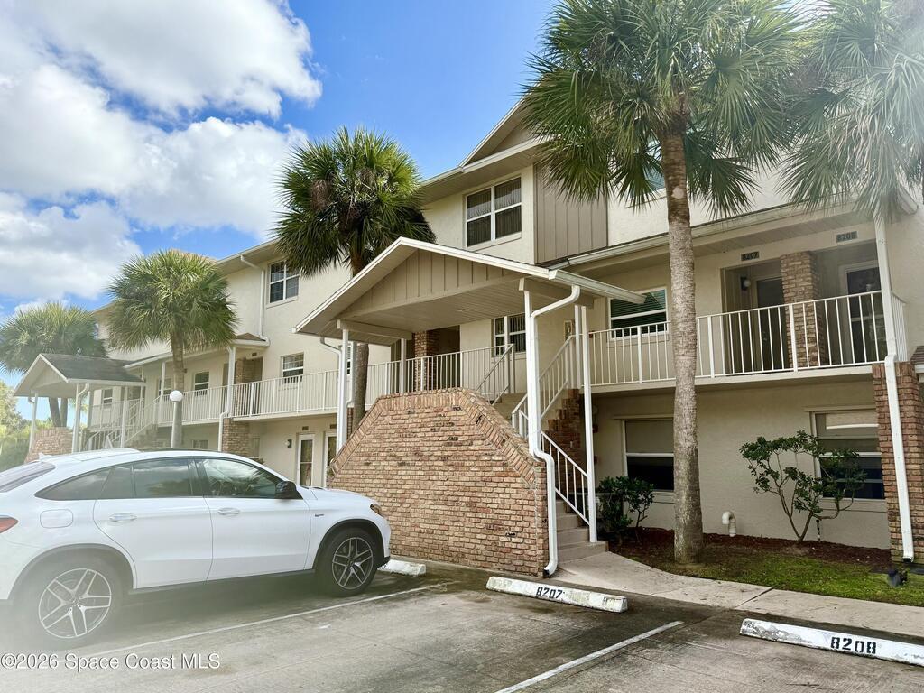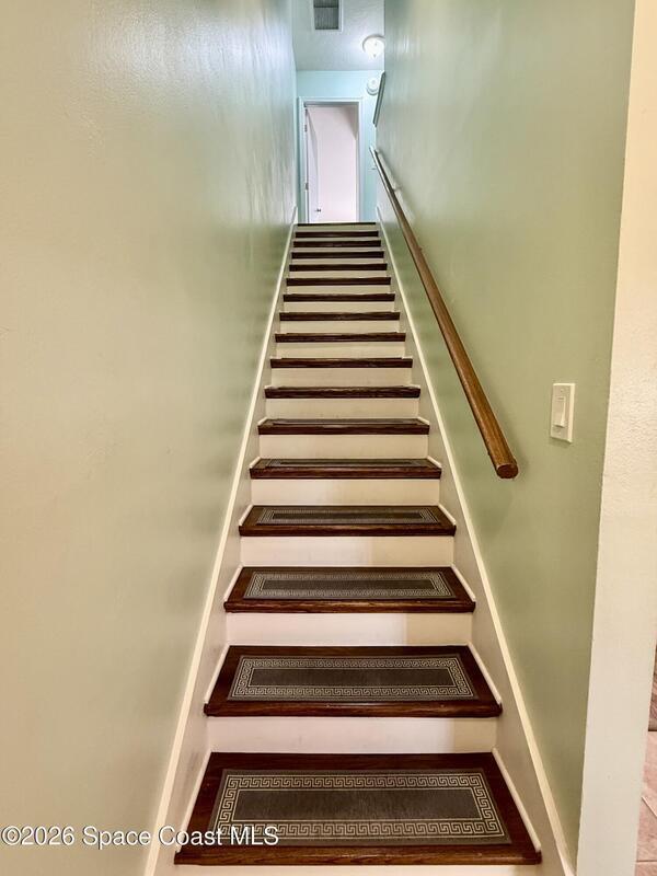 Experience direct views of the golf course from this charming Rockledge condo, which features a two-story layout with 2 spacious bedrooms and 2 1/2 bathrooms. Both bedrooms are located on the upper level, each equipped with its own private bathroom for added comfort and privacy. The condo has undergone recent renovations, showcasing solid surface flooring throughout, custom-built closet systems, and fully updated bathrooms that enhance both functionality and style. The beautifully renovated kitchen boasts modern stainless steel appliances, elegant quartz countertops, and sleek white cabinetry, creating a bright and inviting space. Additional upgrades include impact windows and sliding doors, ensuring both safety and energy efficiency. Parking is hassle-free with one reserved spot directly in front of the unit and an additional covered parking space. The association offers ample visitor parking, an inviting inground swimming pool and direct golf course views.