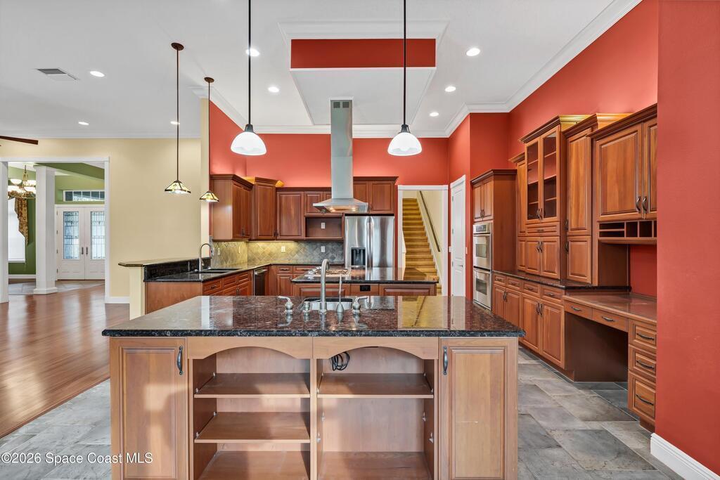 Welcome home! This beautifully maintained, custom built lakefront home, built in 2005, sits upon a 2.44-acre lot and boasts tons of upgrades! The large chef's kitchen has 2 islands, one with a large 5 gas burner cooktop and stainless hood, plus double convection ovens and custom hardwood cabinets. In addition to the 3 bedrooms, there is a downstairs office (also with custom cabinetry and cork floors) plus a large 20'x20' second floor bonus room. The 3-car garage has a taller 1-car door for taller vehicles or trailers. For added security, there are hurricane shutters and an automatic Generac whole house generator. Enjoy beautiful views of South Lake from the kitchen breakfast nook, the living room, and from all 3 bedrooms! This is the first time this property has been available since its construction. Don't miss out on this piece of Florida paradise!