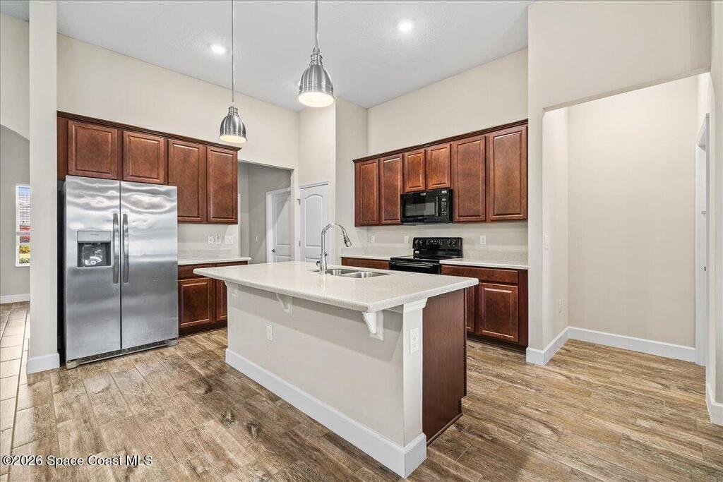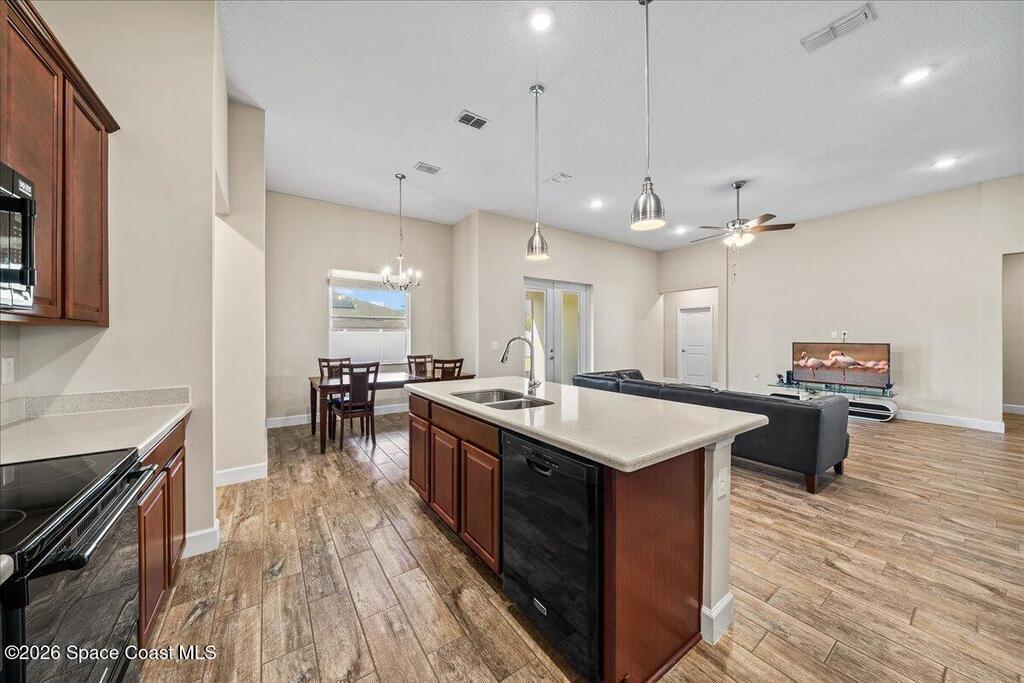 Welcome home to this beautifully designed 4-bedroom, 3-bath residence with a dedicated office/den, offering just under 2, 400 square feet of comfortable living space in the desirable Egrets Landing community of Merritt Island.This home features a bright, open floor plan filled with natural light, creating a warm and inviting atmosphere throughout. The formal dining room and spacious living room provide ideal spaces for both everyday living and entertaining. The large kitchen is the heart of the home, showcasing abundant cabinetry and counter space, recessed lighting, and a convenient eat-in area, all while overlooking the living room for easy connection with family and guests.Wood plank tile flooring flows throughout the main living areas, adding both style and durability. The guest bedrooms are generously sized, offering comfort and flexibility, while the primary suite serves as a relaxing retreat.