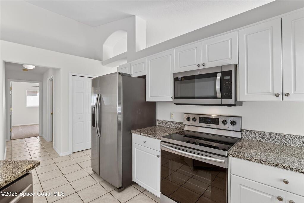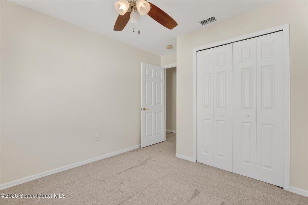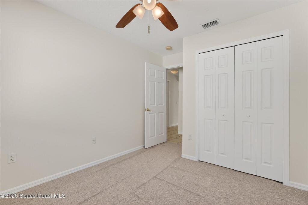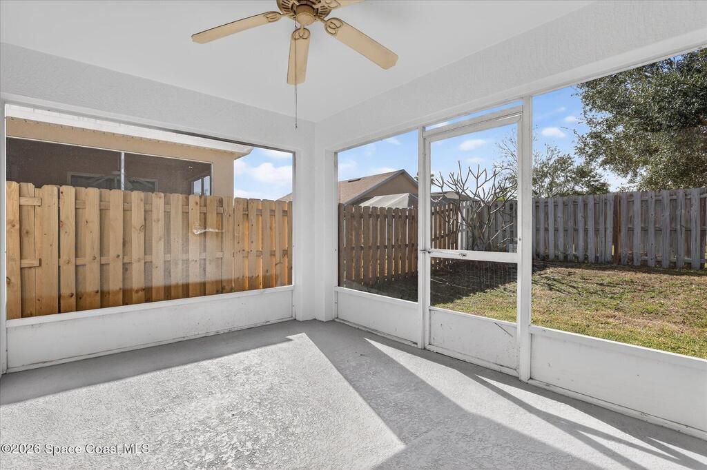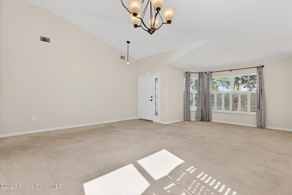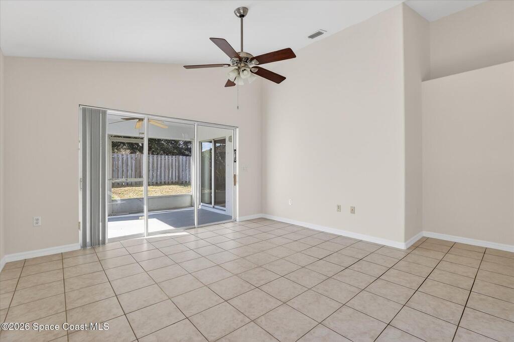 Bright, inviting, and move-in ready, this 4-bedroom, 2-bath home is ideally located in sought-after East Viera. The open floor plan blends formal living and dining spaces with comfortable everyday areas that flow naturally for relaxing or entertaining. Vaulted ceilings and abundant natural light create an airy, welcoming atmosphere throughout. The primary suite offers a peaceful retreat with a spacious walk-in closet, soaking tub, and separate walk-in shower. Fresh interior and exterior paint, brand-new bedroom carpet, and a fully fenced backyard make it easy to settle right in and enjoy a space perfect for play, pets, or relaxed entertaining. Enjoy quiet mornings, lively gatherings, and easy evenings in a home that adapts to your lifestyle. Set within a well-established community with nearby parks, walking trails, playgrounds, and a sparkling neighborhood pool, and zoned for A-rated schools, this home offers effortless living where comfort, convenience, and community come together.