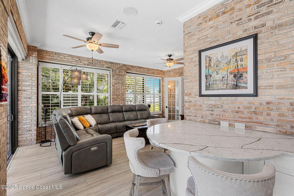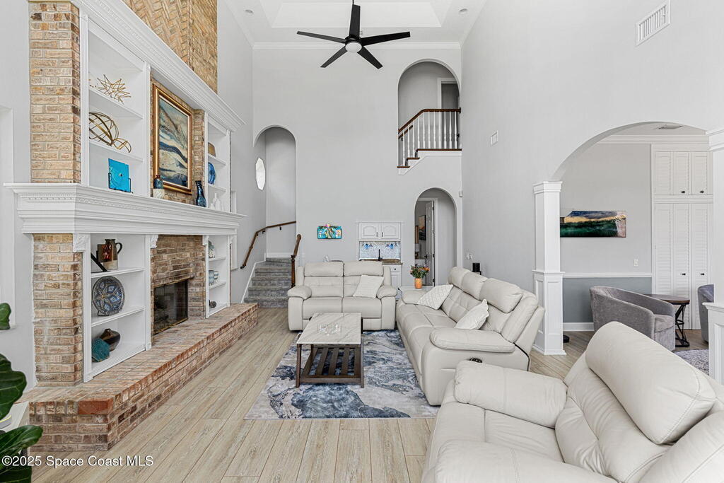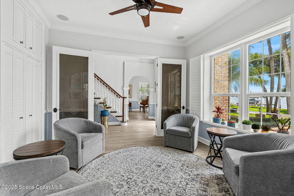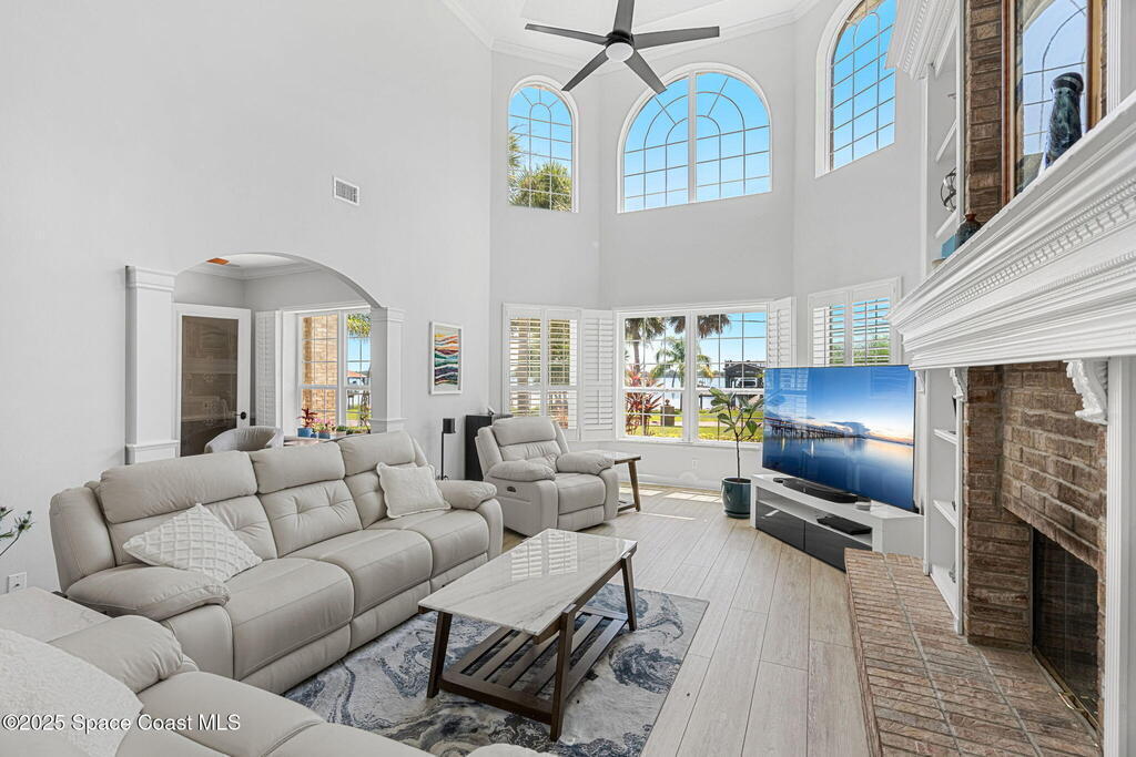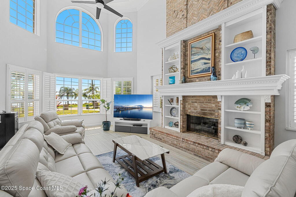 Wake up to endless river views, glowing sunrises, and rocket launches lighting up the sky. This exceptional riverfront home on iconic Rockledge Drive offers the kind of Florida lifestyle most people only dream about. Set on nearly half an acre with 104 feet of Indian River frontage, this property delivers privacy, space, and an unmatched connection to life on the water.From the moment you arrive, it's clear this home has been meticulously cared for. Inside, 3, 820 square feet of light-filled living space unfolds with soaring 25-foot ceilings in the great room, multiple gathering spaces, and warm, timeless finishes throughout. Whether you're hosting holidays, quiet evenings by the fireplace, or entertaining guests, the layout flows beautifully while still offering room to retreat.