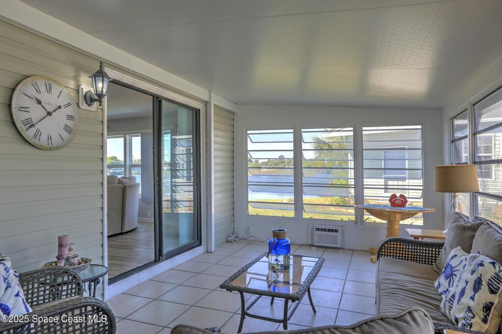 Coastal Sophistication with Stunning Lake Views! This beautifully updated home offers a perfect blend of elegance and comfort, highlighted by serene lake views from the living room and a seamless open floor plan. Expansive bay windows flood the space with natural light, while plank flooring throughout the main living areas adds a modern, cohesive touch. The inviting electric fireplace serves as a stylish focal point, creating a warm ambiance year-round. A sliding glass door leads to a fully enclosed, tiled porch--ideal for enjoying morning coffee or evening sunsets overlooking the lake. The kitchen and bathrooms feature updated cabinetry, offering both style and functionality. Additional highlights include a double carport, a newer roof, and A/C system for peace of mind.