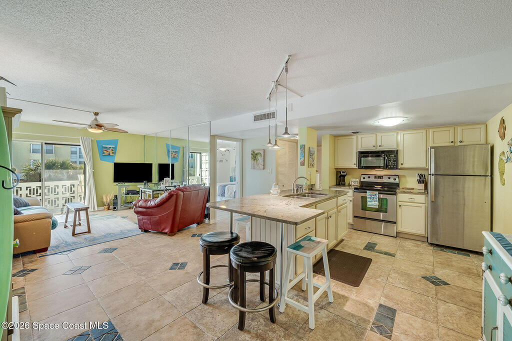 Wake up to ocean views on one of Cocoa Beach's most serene locations, no street crossing required. Tucked along a rare and tranquil oceanfront stretch, this fully furnished coastal retreat offers the best of beach side living without the crowds. Located less than half a mile from the iconic Cocoa Beach Pier, the unit captures beautiful ocean views and a warm, welcoming coastal vibe throughout. Inside, over sized quartz counter tops anchor the kitchen and offer a sprawling open layout to accommodate everyone with comfort and functionality. Full of character and coastal charm, this space is ideal as a personal beach escape or investment opportunity. Step outside and enjoy the laid-back vibes of Cocoa Beach, with local shops, cafes, and restaurants just a short walk or bike ride away. Easy living where flip-flops are the dress code and life moves at a rhythmic ocean-paced flow.