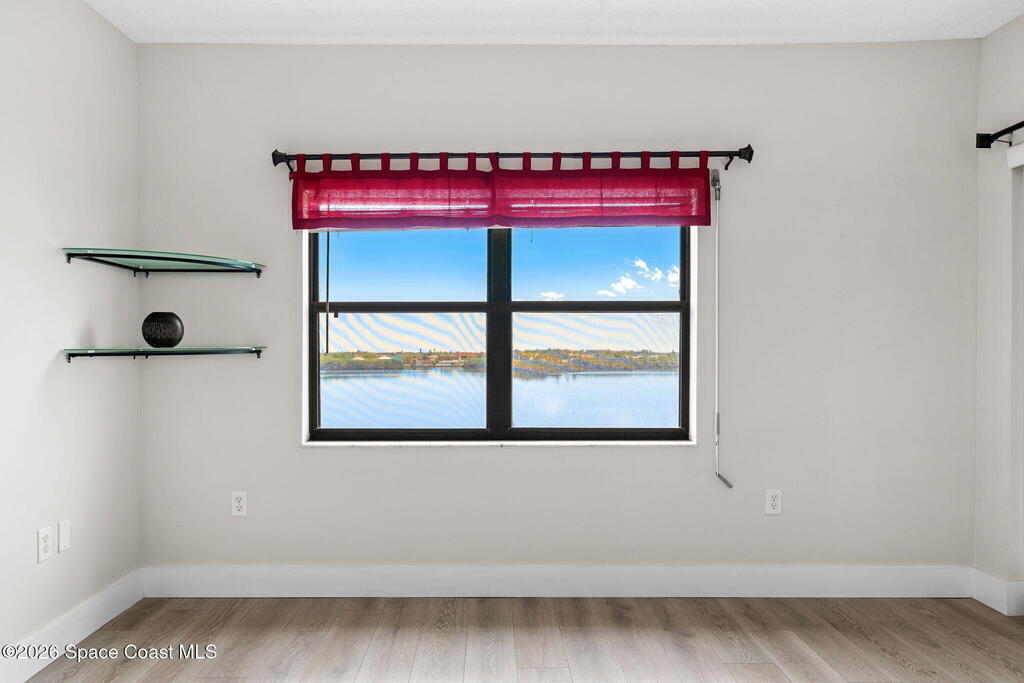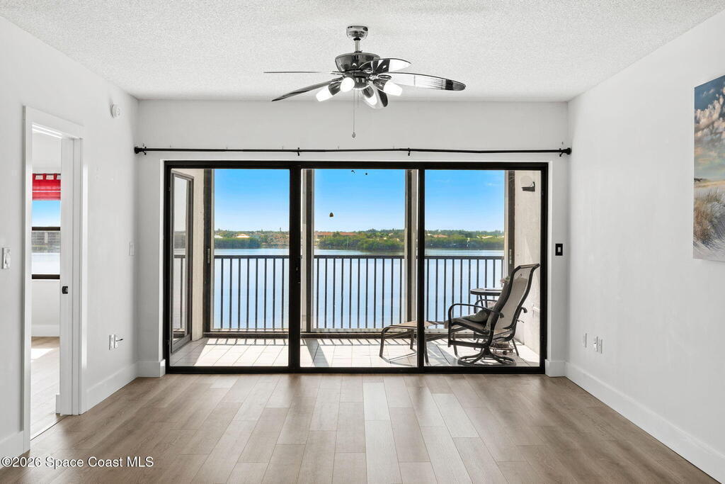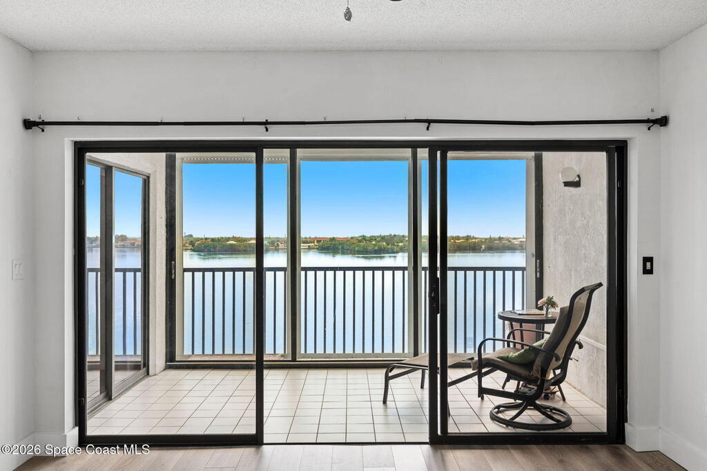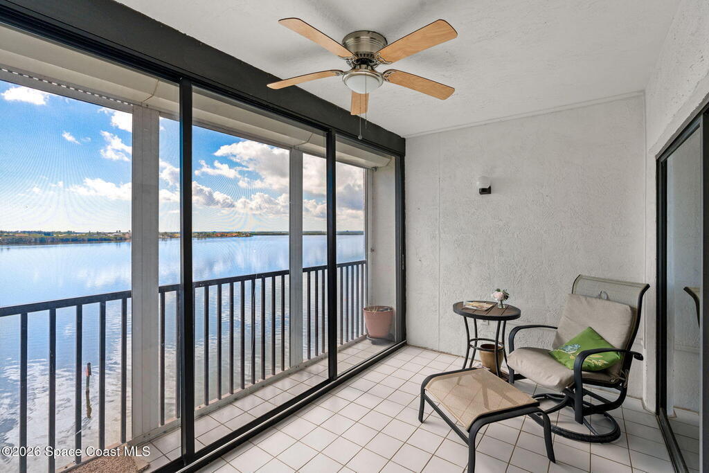 A true million-dollar view without the million-dollar price tag. This top-floor penthouse delivers breathtaking fifth-floor river views with no neighbors above you -- truly the best seat in the house. Higher ceilings than the lower floor units create an open, airy feel, while the no-carpet interior offers clean, low-maintenance living throughout. Impact-resistant sliding glass doors lead to a private balcony, accessible from both the living room and primary suite, where you'll enjoy sweeping river views day and night. Wake up to gorgeous water views from the primary bedroom, perfectly positioned within a split floor plan that provides exceptional privacy. The unit includes a private garage, a rare and valuable feature. The community offers resort-style amenities including a heated pool, hot tub/spa, gym, sauna, tennis and pickleball courts, and a convenient car wash area, along with a secure underground garage. Condo fees include hot water, cable, internet, exterior insurance and more!