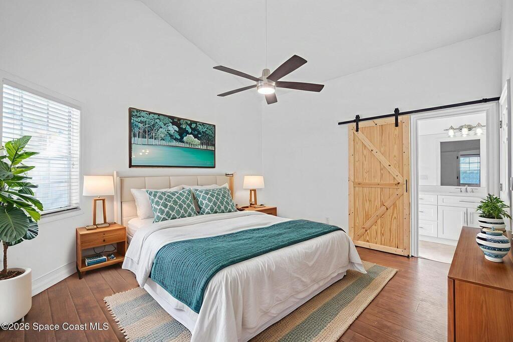 Greenbriar Village.. Melbournes best kept secret! This Saltwater Pool home has been beautifully updated throughout. Owners invested to make this their forever home, then a work relocation had a change in plans. All major items already taken care of Hot Water Heater (2025), Pool Pump (2025), HVAC with warranty (2024), Roof (2023). Enjoy 20ft ceilings in the foyer leading into the dining and family room. Primary suite is located on the first floor - entailing a custom barn door, updated double vanity, wood look tile floors & spacious walk-in closet. Upstairs you will find a massive loft with 2 beds & a full bath. Glass french doors lead outside to the covered/screened back porch. Backyard includes gas hookups to install outdoor grill or kitchen. Bring pets! Large fenced in backyard with saltwater pool. HOA maintains sprinklers, front yard landscaping, and backyard privacy fence.