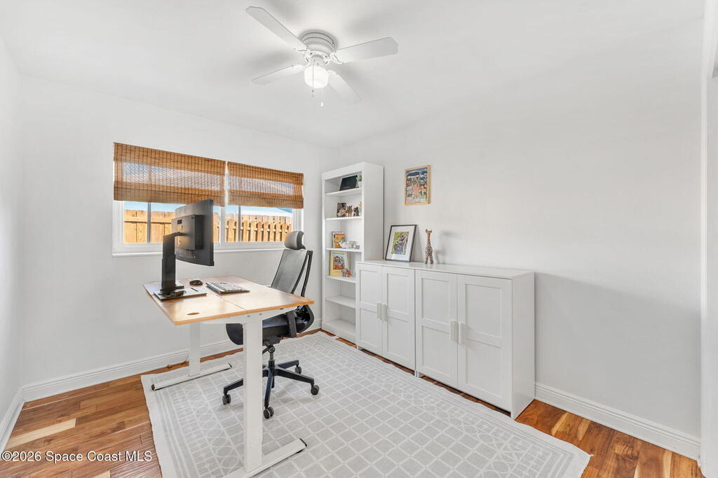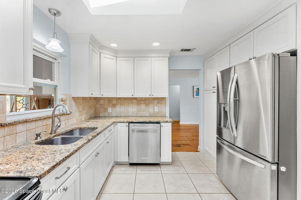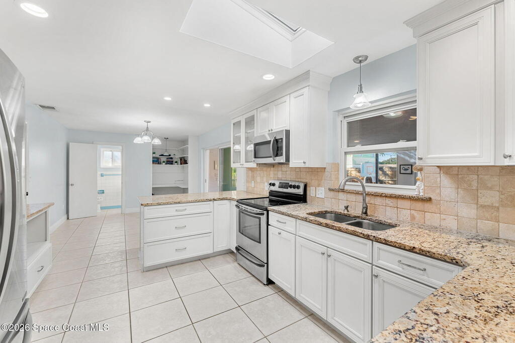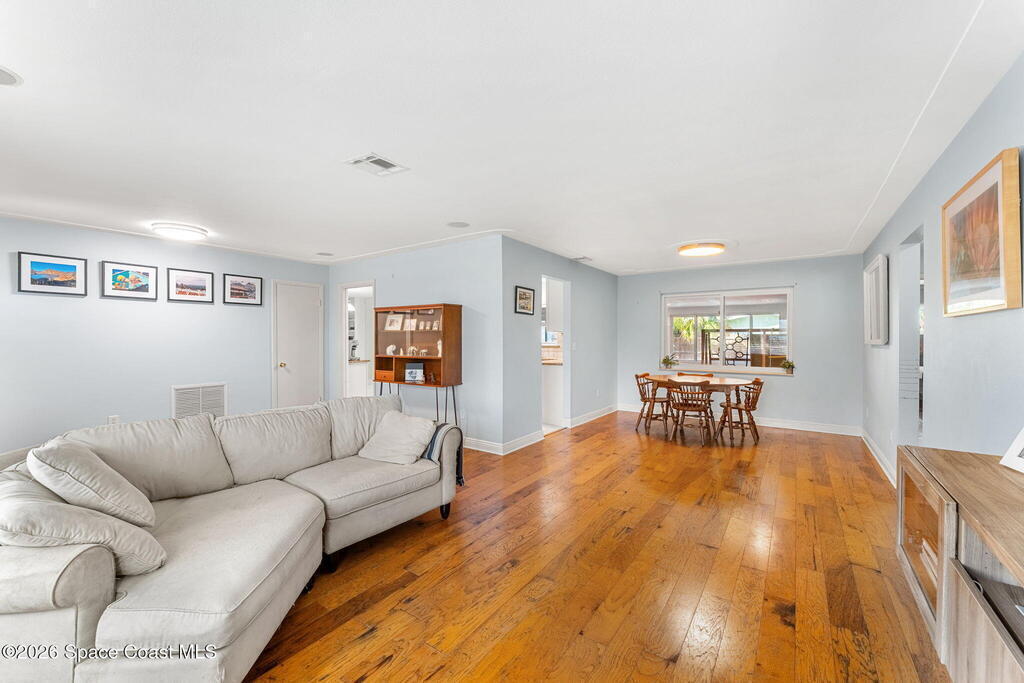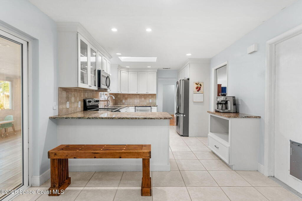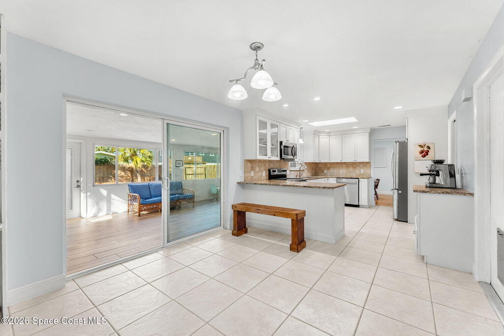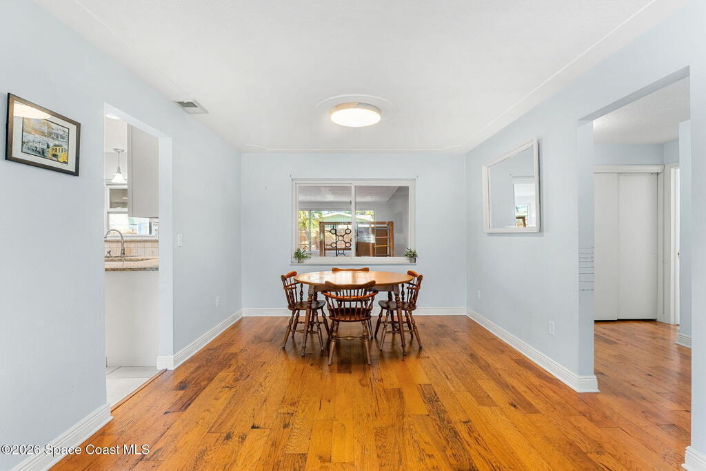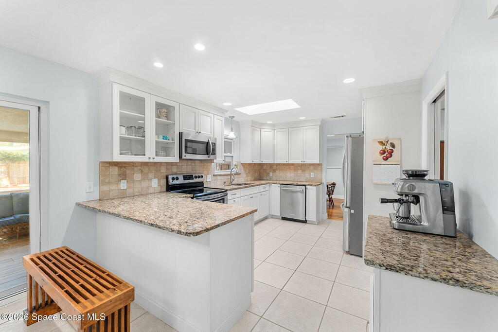 Just minutes from the beach & bursting w/Florida energy, this radiant, refreshed pool home hits differently from the second you step inside, with wood & tile floors running throughout, smart upgrades in every space & natural light spilling in like it was invited. The kitchen brings both polish & practicality w/ granite counters, a tile backsplash, SS appliances, white soft-close cabinetry, plus a sunny skylight that keeps everything glowing all day long. A cozy breakfast nook features built-in shelving for extra charm & function, while the Florida room adds that bonus hangout space everyone wants. The owner's suite feels private & pulled-together, offering direct access to the Florida room, a statement dimensional wood accent wall, a walk-in closet & an ensuite w/a tiled shower. One of the guest bdrms includes built-in shelving too, adding even more personality. Plus a full guest bath w/ tub/shower combo. Sellers currently paying a low $3, 100 for homeowner's insurance!
