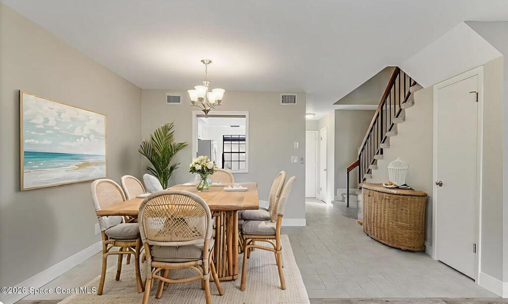 Just a hop, skip, and a jump to the Atlantic Ocean, this beachside townhome is all about location and laid-back coastal living in desirable Indian Harbour Beach. Featuring 2 bedrooms, 2.5 bathrooms, and a 1-car garage, the 1, 310 SF layout offers a functional and comfortable floor plan. The kitchen features stainless steel appliances, white cabinetry, and quartz countertops, creating a clean, coastal feel ideal for everyday living and entertaining. Built in 1984, recent updates include a 150 AMP electrical panel (2024). Washer and dryer hookups are conveniently located in the garage. Enjoy easy beach access and the relaxed beachside lifestyle with nearby local dining, shopping, parks, and everyday conveniences--perfect for morning walks along the shore, ocean breezes, and evenings enjoying all that this vibrant coastal community has to offer.