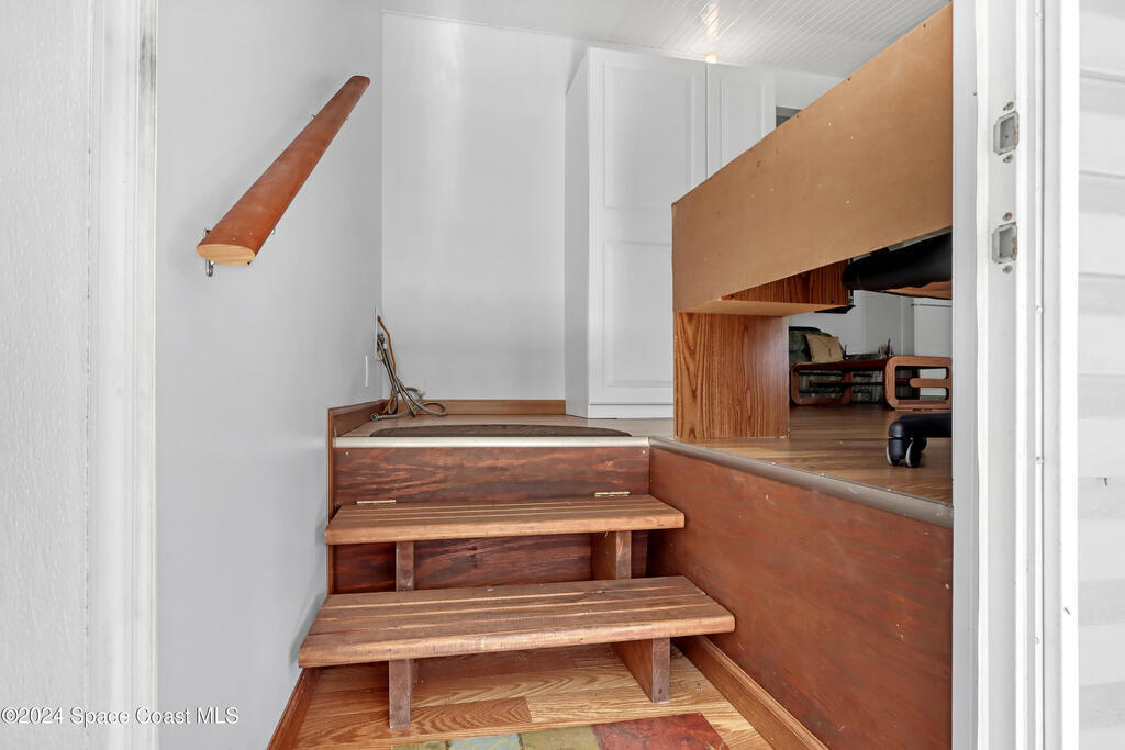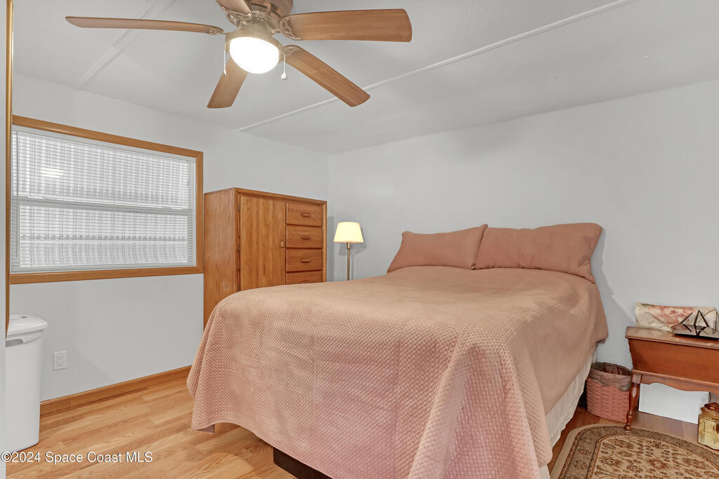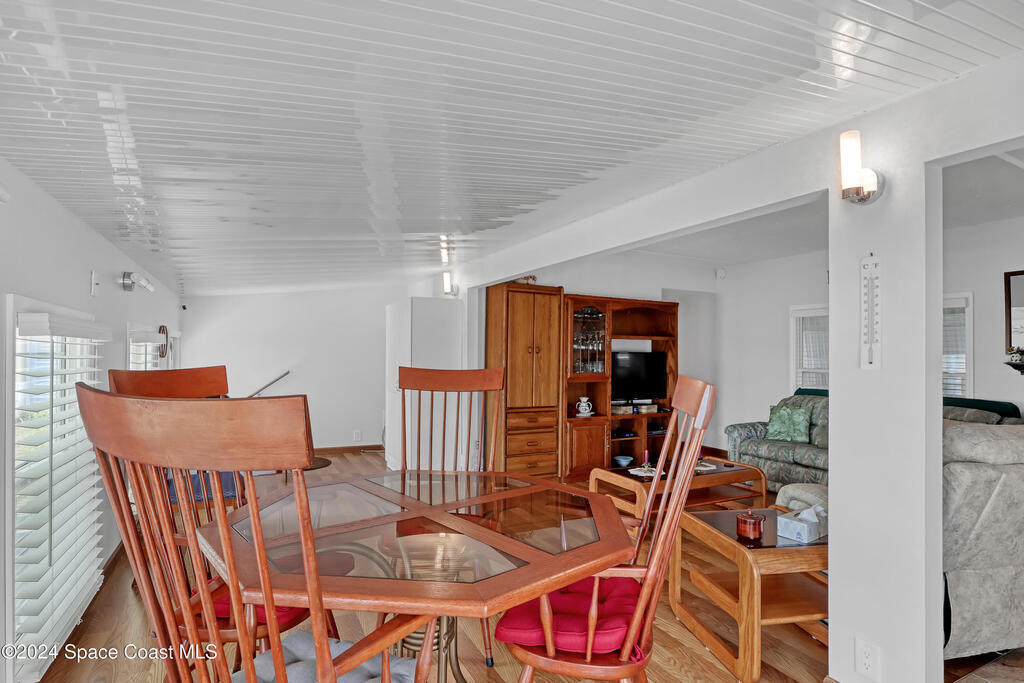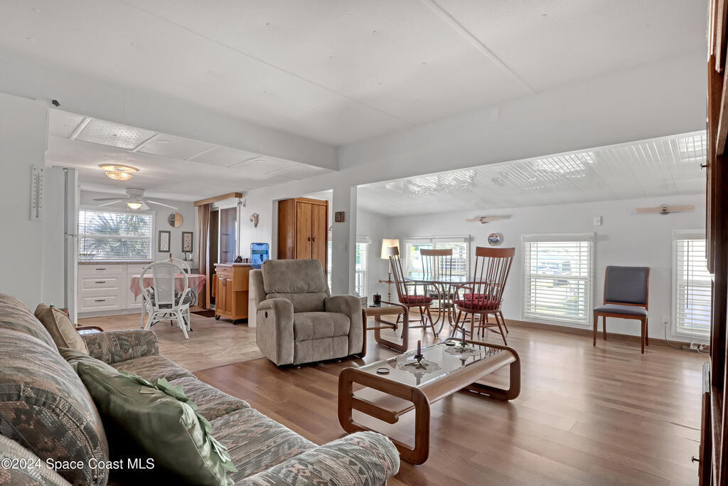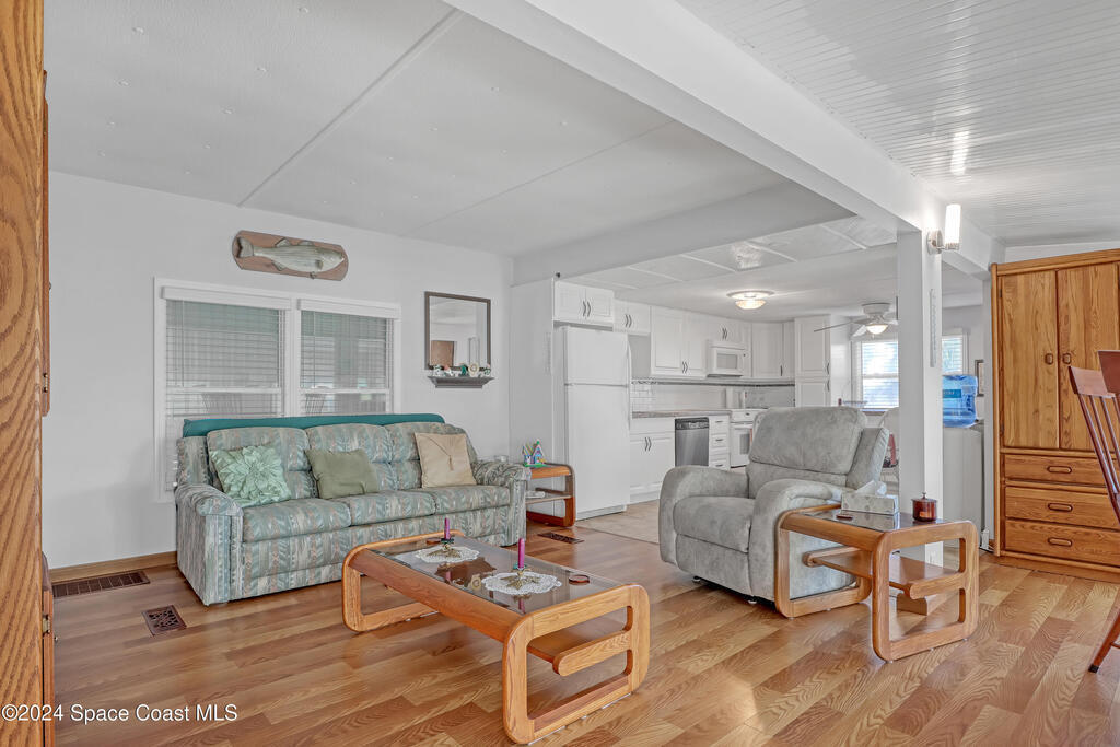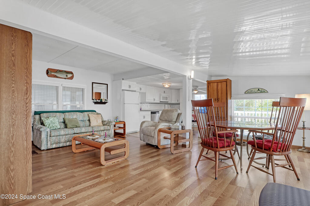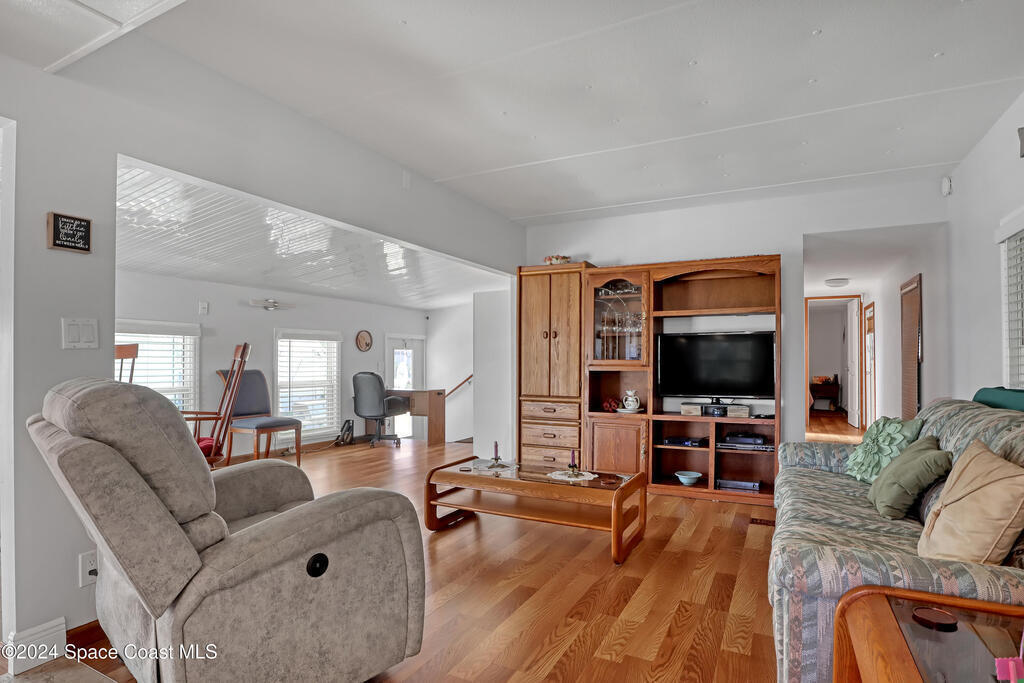 Home Sweet Home! This impressively remodeled home was stripped down to the studs & built back up. Including a new master suite half bathroom, fully updated common bathroom, new windows & slider on SE side, vinyl siding, plywood subflooring & a raised flooring deck in the entry living area, nearly doubling the width, creating a fabulous great room open floor plan, with additional storage space below. A gorgeous eat in kitchen with ample cabinet & countertop space, granite tops & under cabinet lighting. So many other well executed finishing touches throughout! New AC in 2023. Outdoor features include a raised deck with railing off the kitchen, storage room, double length carport, clamshell & roll down shutters. This home comes fully stocked and furnished and is located in the 55+ waterfront community Palm Bay Estates, one of Palm Bay's best kept secrets, featuring a heated community pool, clubhouse, boat launch, boat & RV storage and a wide variety of community activities.
