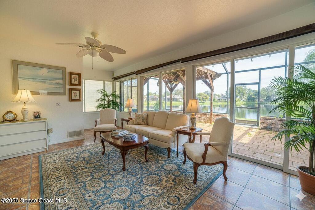 Welcome home to this beautifully maintained 3-bedroom, 2-bath split floor plan located in the highly sought-after La Cita community. Designed for both comfort and functionality, this home features an open floor plan with vaulted ceilings and a cozy gas fireplace that anchors the main living space.Enjoy peaceful lake views from the screened porch, perfect for morning coffee or evening unwinding. The Florida room with blinds adds flexible living space. An indoor laundry room, 2-car garage, and thoughtful layout make everyday living effortless.Major updates include a newer roof (from 2023) and A/C, offering both efficiency and confidence for years to come. Conveniently located at 3820 Wethersfield in one of Titusville's most desirable neighborhoods, this home blends comfort, style, and location seamlessly.