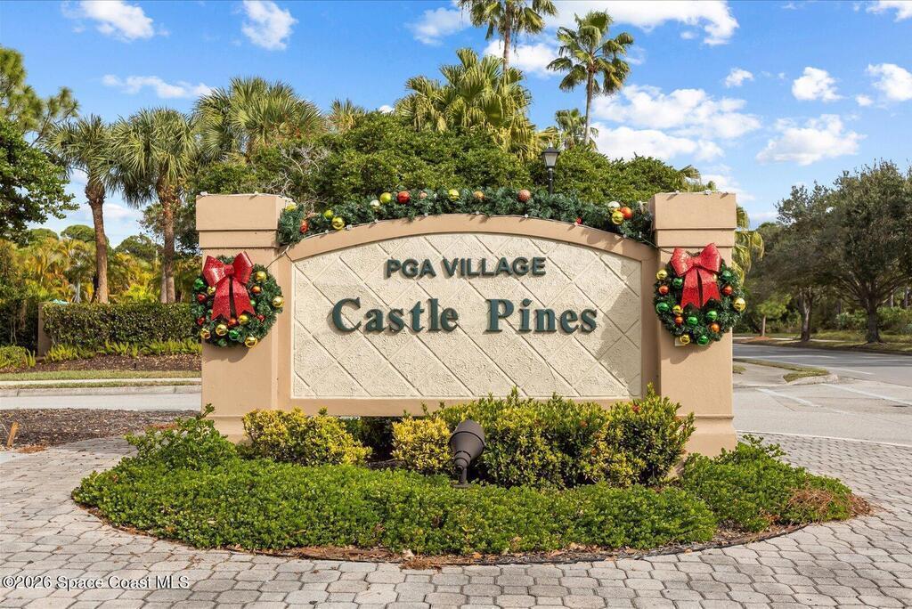 Move-in ready luxury 3BR/2.5BA townhome offering a low-maintenance lifestyle in the gated Castle Pines community of PGA Village, one of Florida's most prestigious golf destinations. Ideally located steps from the community pool, this beautifully updated home features fresh interior paint, new ceiling fans, upgraded flooring, and brand-new kitchen appliances.Carpeted bedrooms provide comfort, while tile and laminate enhance the main living areas. All bedrooms offer tranquil pond views, highlighted by a screened ground-level patio and a balcony off the primary bedroom and upstairs living area--perfect for enjoying evening sunsets over the water.HOA fee includes cable, extremely high-speed internet, ground maintenance, landscaping, and common areas, helping provide meaningful annual cost savings. Conveniently located minutes from I-95, entertainment, restaurants, and near the beaches- effortless living with easy access to everything the area has to offer.