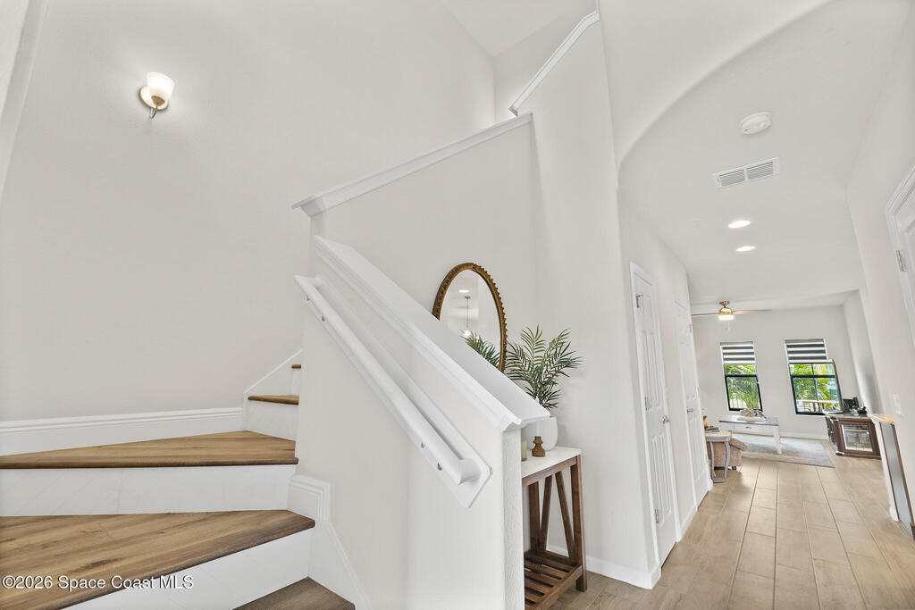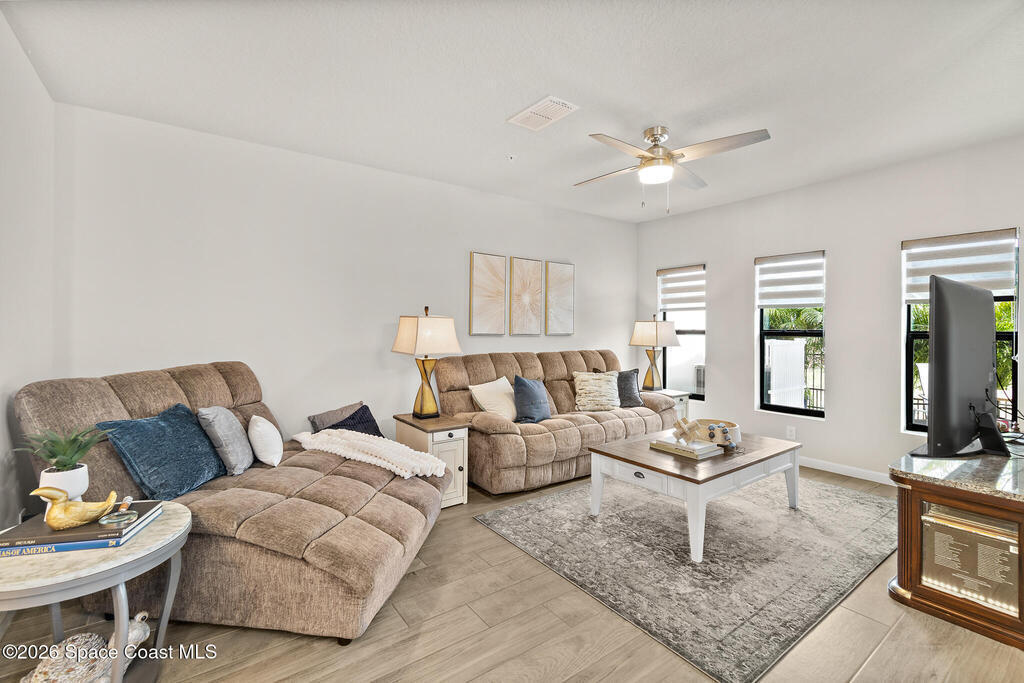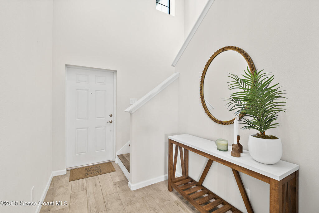 Looking for a maintenance-free Florida lifestyle? This home delivers just that. The HOA covers roof replacement, exterior painting, CABLE, INTERNET, LAWN CARE, sprinkler maintenance, and exterior insurance, offering true low-maintenance living.This like-new 2020 townhome is located in the beautiful and convenient Meadow Pointe community of Rockledge, Florida. This townhouse features 3 bedrooms, 2.5 bathrooms, and a 1-car garage, and is filled with tasteful upgrades and thoughtful selections throughout.As you arrive, you'll appreciate the side-by-side driveway space and oversized one-car garage. A charming front porch, tucked behind a quaint aluminum gate, provides the perfect spot to relax and watch the neighborhood come to life.Inside, you're welcomed by 36-inch tile planks and high ceilings, creating an open and airy feel, ideal for showcasing a statement chandelier. The kitchen impresses with a large island topped with granite countertops, custom pendant lighting, stainless