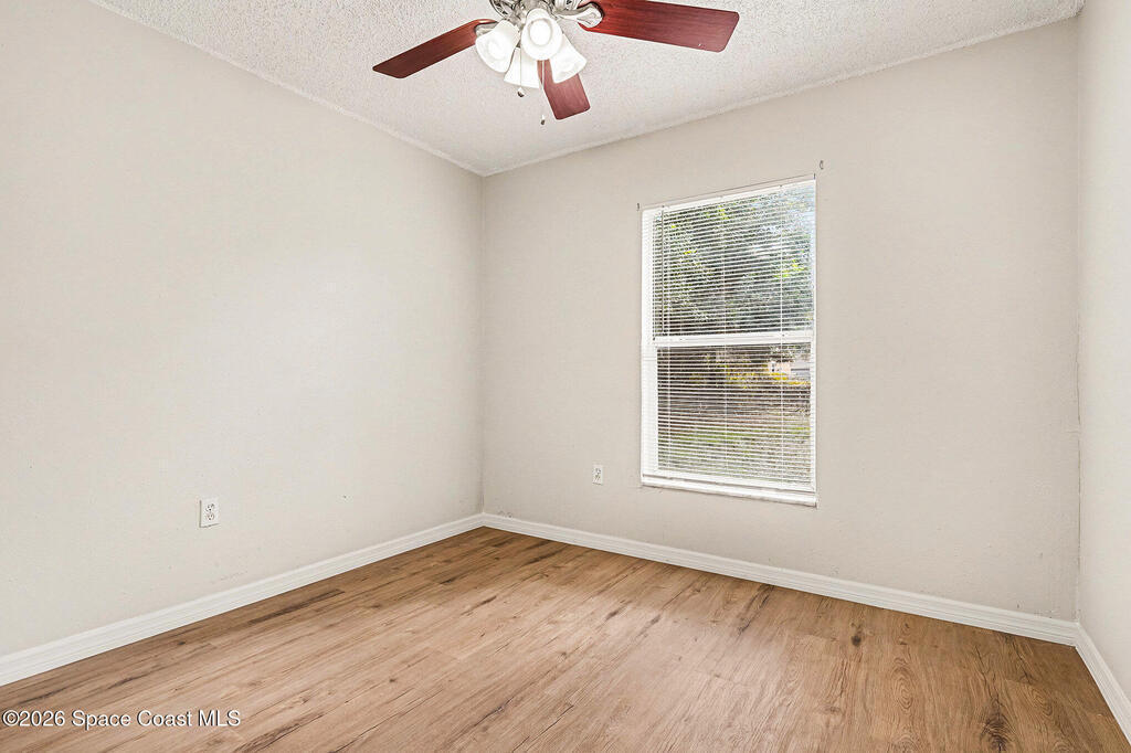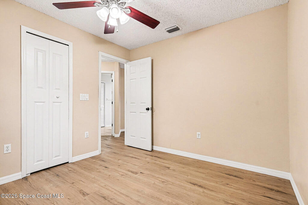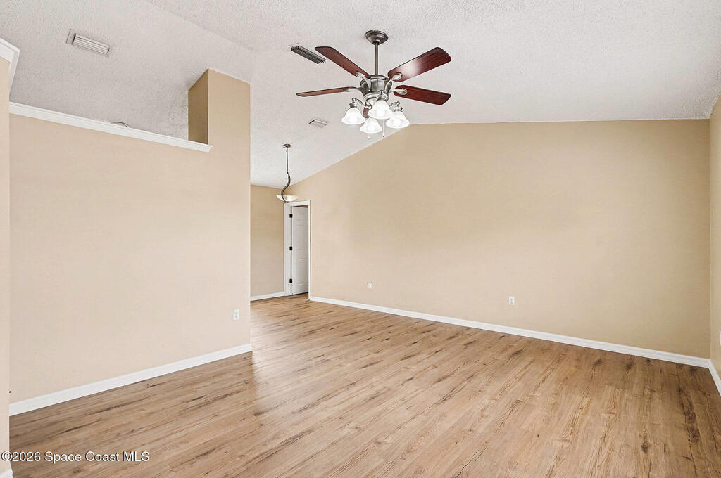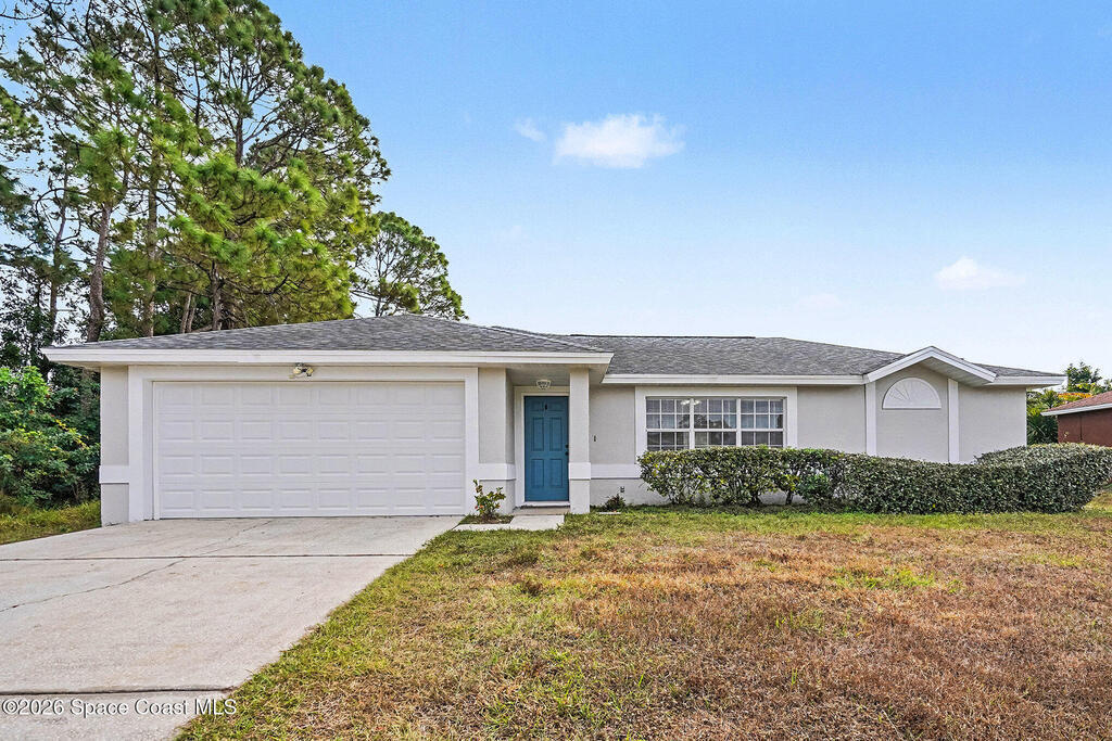 Welcome to this charming 3-bedroom, 2-bath home in NW Palm Bay. It was an investment property but improvements have been made over the years! 2025, New LPV flooring in living spaces and bedrooms, New garage door opener, new quartz countertop, updated bathroom vanities and commodes, freshly painted patio and garage floors. 2024 Exterior Paint, 2020 New Dishwasher, 2019 New Roof and SS Refrigerator, 2018 added insulation to attic and AC duct cleaning, 2017 New Water Heater. Laundry closet in guest bath. Fenced yard. Affordably priced and ready for a new family! Ideally located to Heritage Parkway to the West and Minton/Palm Bay Road to East.