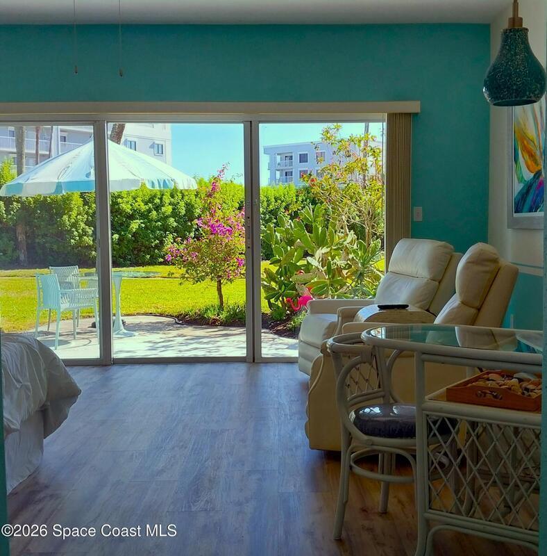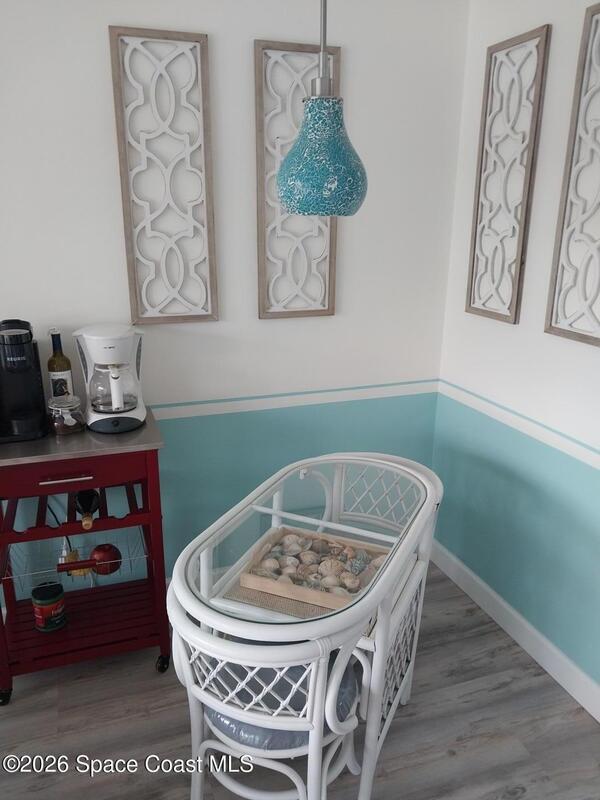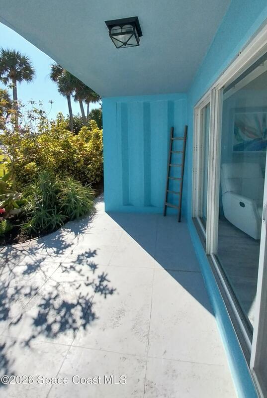 The open, efficient floor plan of this bright & airy coastal retreat extends beyond the sliding doors to an additional 120 sq. feet of private outdoor space facing the gardens & recreational areas of the 4.25 acre Association property. This move in ready unit is well located on A1A at Seagull Beach Park. Ideal for singles, snowbirds, family time share or investment. 90 day minimum rental per Assoc. rules. 2024 Kitchen & Bath, 2023 A/C, New Roof 2023, updated Olympic size pool 2024. Features include 9-ft ceilings, luxury vinyl plank flooring, LED lighting, smart thermostat, keyless entry & paver patio. Satellite Beach is considered a safe, quiet beach town with highly rated schools & a strong community feel. It is less crowded & less commercialized than nearby Cocoa Beach or Melbourne Beach. All furnishings can stay with a separate Bill of Sale.