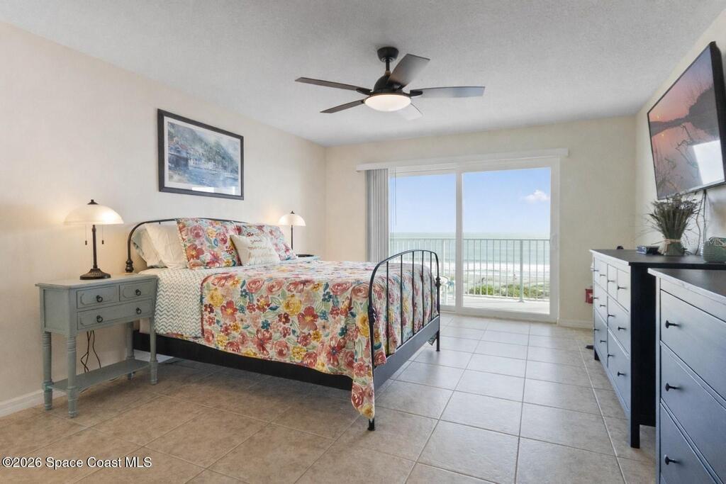 Wake up to endless ocean views and the soothing rhythm of the Atlantic in this direct oceanfront 3-bedroom, 2-bath corner residence on Cocoa Beach. Perched on the fourth floor, this light-filled condo offers sweeping, unobstructed water views from every angle and an expansive private balcony--perfect for sunrise coffee and sunset cocktails. Designed for relaxed coastal living, the redesigned 2023 kitchen features new cabinetry, granite countertops, counter-height bar, and stainless-steel appliances. The spacious primary suite is a true retreat with ocean views, balcony access, and dual closets. Upgrades include tile flooring, hurricane-rated sliders, updated lighting, refreshed baths, in-unit washer/dryer, new HVAC and water heater (2024), and newer front screen door. One-car garage provides ideal beach gear storage. Three-way split plan ensures privacy. Offered fully furnished and turnkey. Building completed concrete restoration (2024-25), pool renovation, and Milestone Inspection.