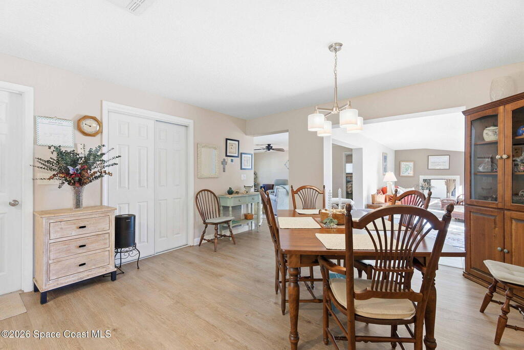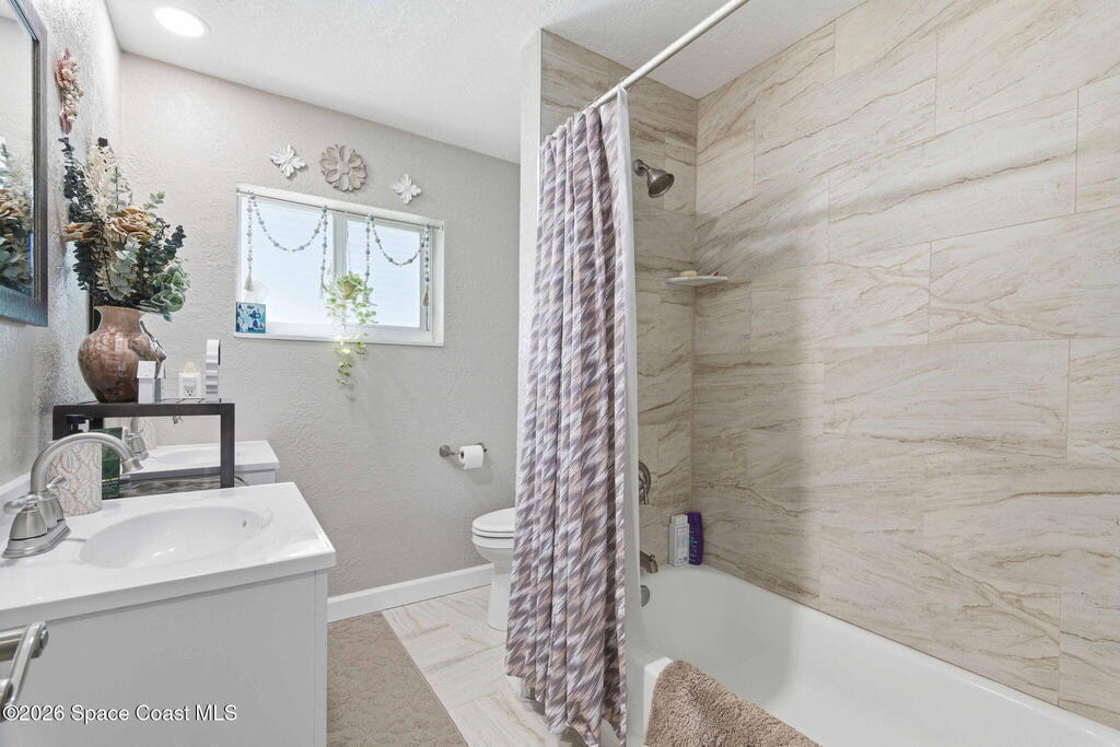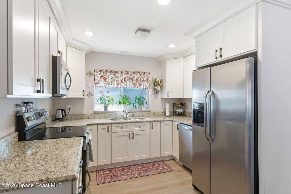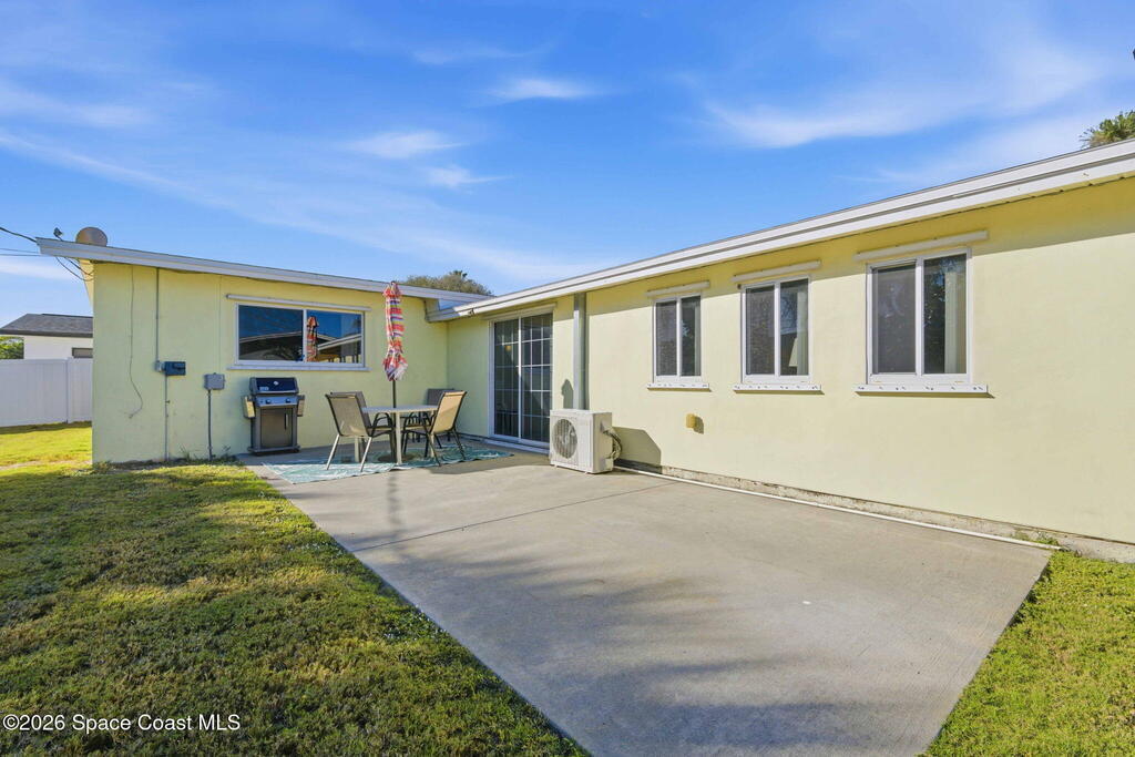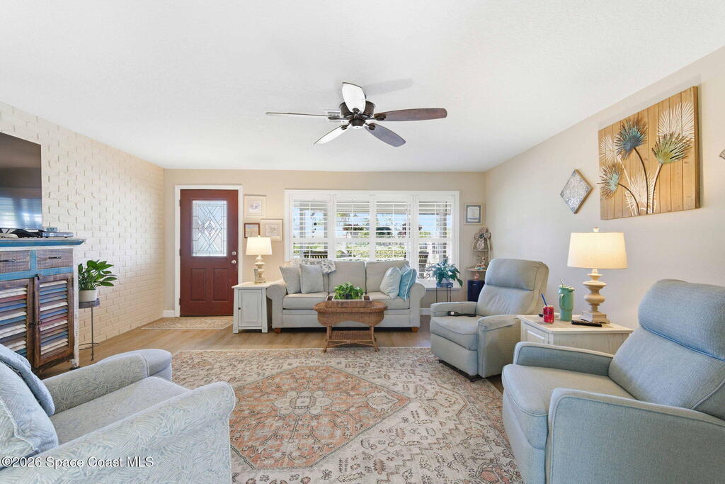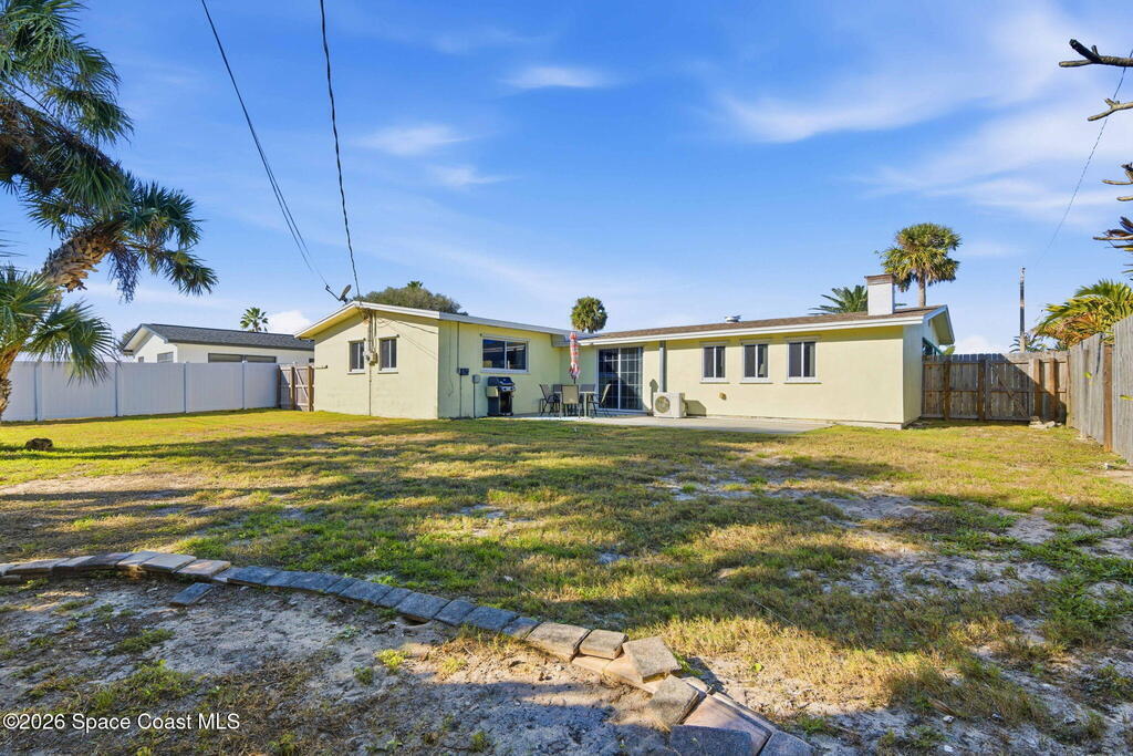 This stunning coastal retreat delivers Florida lifestyle just moments from the ocean, beautifully updated, and designed for effortless living and entertaining. Situated in a quiet beachside setting with no HOA, this thoughtfully renovated home features an updated kitchen, bathrooms and flooring all in a floor plan that flows effortlessly. Enjoy a large bonus room off the living and kitchen areas perfect for your home office, playroom or recreation room. Enjoy outdoor living with a private backyard and large patio. For added protection during storms, Bahama shutters are on all exterior side windows and aluminum shutter panels for all other windows and sliders. Located just minutes from the beach, river, shopping, dining, and local amenities, this home blends modern upgrades with laid-back coastal charm. Whether you're looking for a full-time residence or a beachside escape, this property is truly turnkey and ready to enjoy from day one.