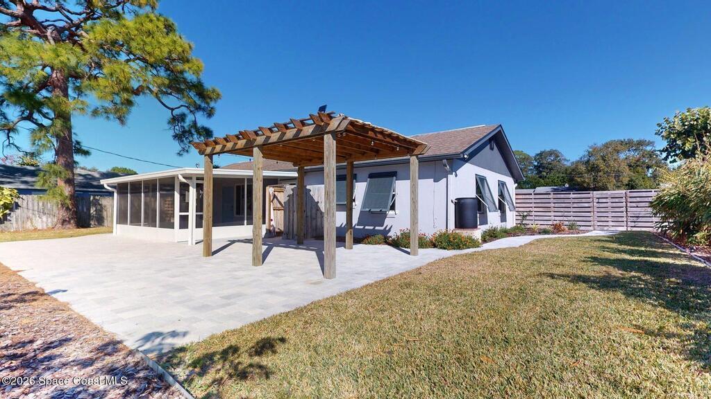 WOW! YOU MUST SEE THIS HOME! Completely remodeled over time to create the most stunning, serene home in the coolest location. The kitchen was redone in 2012 with 52inch cabinets with crown molding, Granite countertops and soft close drawers/cabinet. French door refrigerator, flat top stove, built in microwave (appliances 2025). Plus Pass through to porch. Primary bathroom boasts a new shower in 2025. The A/C and water heater new in 2021. Large Screened porch plus new decking and Pergula out back in 2025 with multiple fruit trees and intimate imbedded solar lighting. Enclosed breezeway with tongue and groove ceiling and beautiful impact rated windows. updated 200 amp electric. Outdoor shower with hot/cold water. External antenna with clear reception to all networks and PBS. lrrigation timer new in 2025. Sprinker system with new 360FT well. Maintenance free shell front yard and embedded solar lighting Plus an Olive Tree! Fully Fenced back yard w/shed. This is a MUST SEE house!