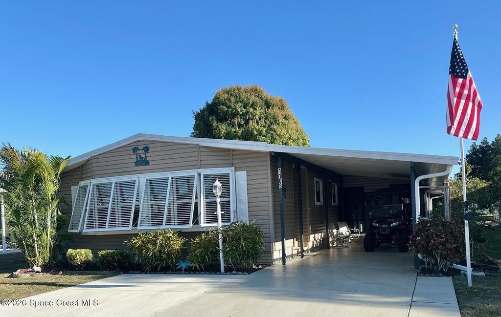 This home is beauty! Located in the quiet Indian Section of Barefoot Bay where you own your oversized lot and this home borders a canal for privacy! Its metal roof is a '22, storm shutters '23, water intake line '23 , with kitchen and bath remodeling '22 with update '25, a bathtub is in the guest bath and lot more updates done by previous owners in '12-17. You'll love the lifestyle of Barefoot Bay with 3 pools, 18 hole golf course, pickle ball, walking trails, lite lagoon fishing pier, mini golf, Atlantic private beach, private garden area, softball, restaraunts, live entertainment almost every night, over 100 clubs to be active in and so much more. The annual fee of $1001.17 in this Florida Recreation District is included in the tax bill.A $1605 one time membership fee is collected from the Buyer at closing. This area is quite and perfect for as much fun as you want!