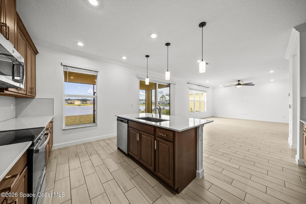 Motivated seller. This beautifully updated Lennar Carlisle model features 4 bedrooms, 3 bathrooms, and 2, 610 sq. ft., highlighted by BRAND-NEW UPSTAIRS FLOORING and a serene WATER VIEW.SELLER IS OFFERING CLOSING COST INCENTIVES. BUYERS MAY ALSO ASK ABOUT AVAILABLE DOWN PAYMENT ASSISTANCE PROGRAMS. Situated in a fully built, GATED COMMUNITY with no ongoing construction, this home offers peace and privacy. The open-concept layout includes QUARTZ COUNTERTOPS, 42'' CABINETRY, and quality finishes throughout. A first-floor flex room with a closet provides versatility as a home office or optional 5th bedroom. Upstairs, enjoy a spacious loft and a private balcony off the primary suite overlooking the lake. Notable upgrades include a CUSTOM PRIMARY CLOSET, WHOLE-HOUSE WATER FILTRATION SYSTEM, SCREENED PATIO, IMPACT WINDOWS, 8' INTERIOR DOORS, and solid concrete block construction. Community amenities feature a resort-style pool, gated access, and professionally maintained grounds.