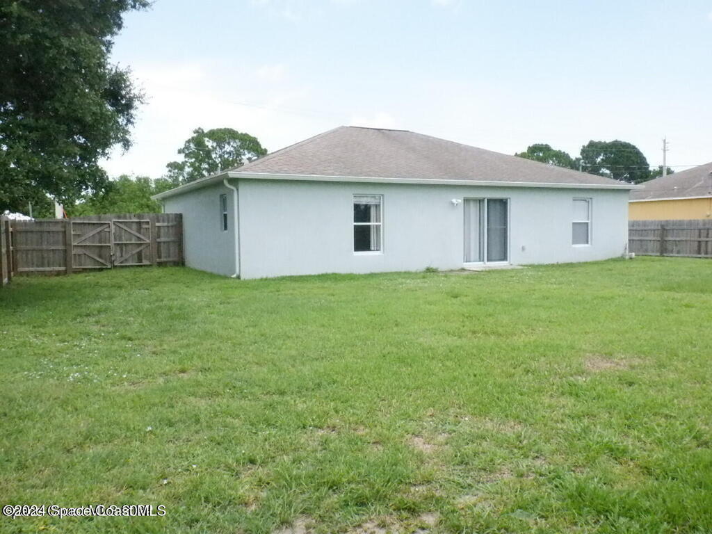 Beautiful home with modern tile and wood laminate flooring throughout. The kitchen has all newer stainless steel appliances including a double oven stove, built in microwave, and a French triple door refrigerator, with a dishwasher and oak cabinets. Open concept with kitchen overlooking living area. Modern lighting and welcoming good sized bedrooms. Large wood privacy fenced back yard with shed. Come make it your new home. one dog ok, no cats please. Conveniently located right off Emerson and Jupiter. Close to Bayside Lakes and Malabar Rd. Close to I95 and not too far from US1. Lots of stores, parks, restaurants and gas stations to choose from. 1 dog ok, no cats please. Must have renters insurance with pet liability insurance.