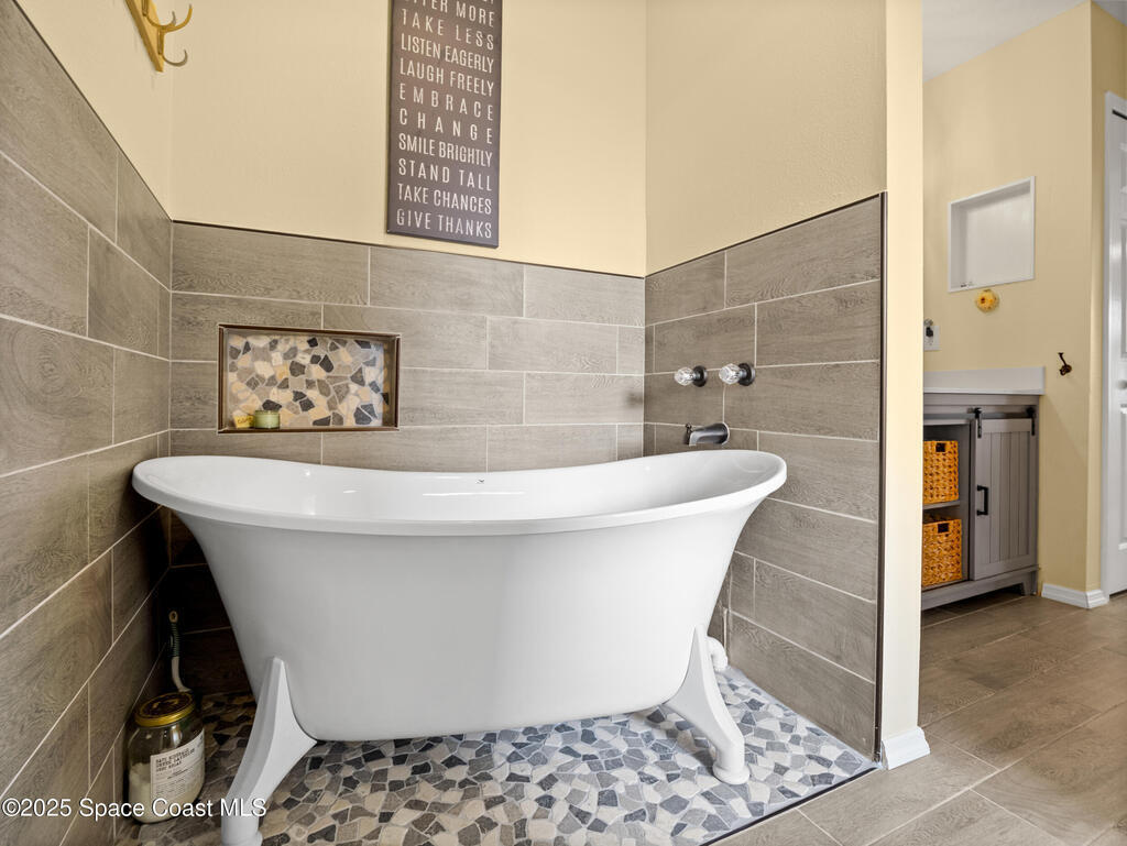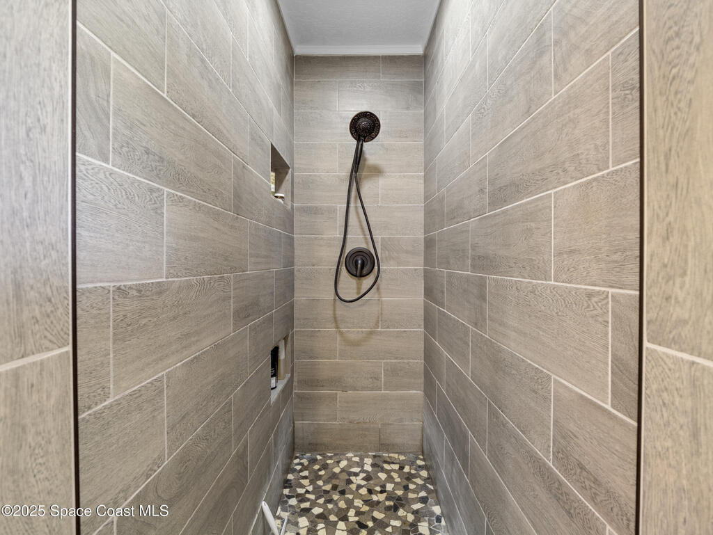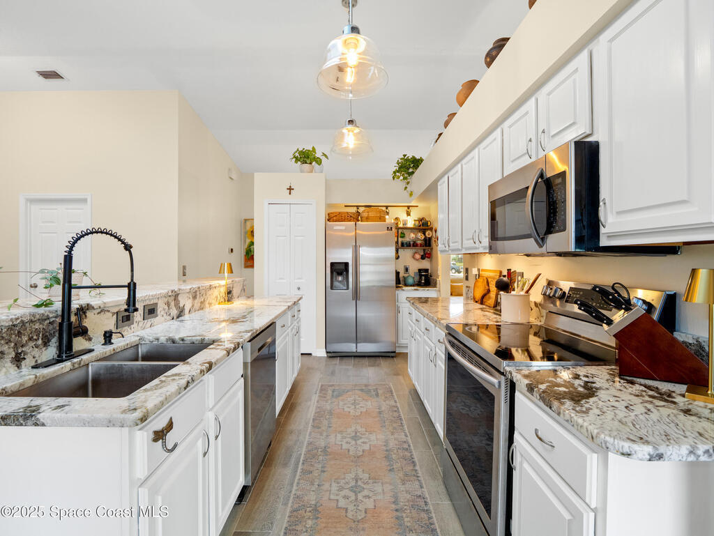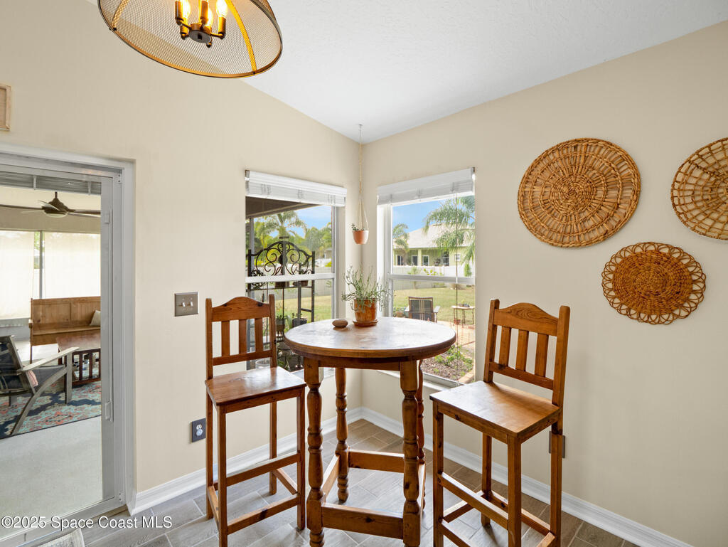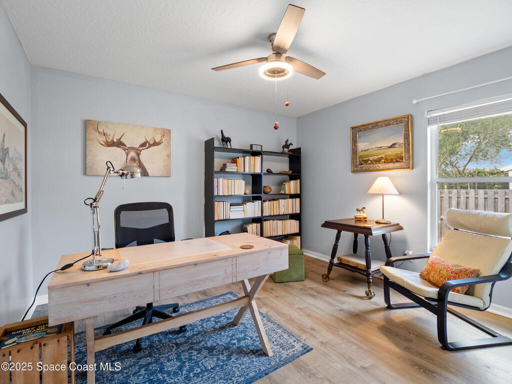PRIDE OF OWNERSHIP in this well-maintained West Melbourne CBS block home on an extended 0.37-acre fully fenced lot. Lush Florida native landscaping offers beauty and room to grow. This home features 3 bedrooms and two living spaces, one with a wood-burning fireplace. The kitchen offers quartz countertops, bar seating, solid wood cabinetry, and stainless steel appliances. Desirable split floor plan with a spacious primary suite including a walk-in closet. Escape the day with your ensuite bath with dual sinks, fully tiled walk-in shower, and separate soaking tub. Weatherproof vinyl flooring throughout--NO carpet. Enjoy morning coffee on the screened-in porch. ROOF 2023; HVAC 2024. Conveniently located just 5 minutes to Hammock Landing and I-95, 15 minutes to area beaches, and 25 minutes to Patrick Space Force Base. Schedule your showing today!