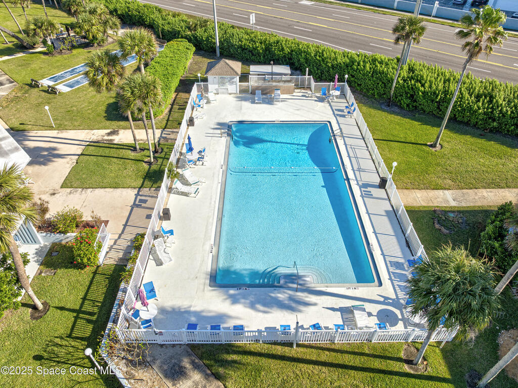 First-floor beachside one-bedroom, one-bath residence located directly across the street from the Atlantic Ocean in Satellite Beach. Enjoy convenient public park and ocean access just steps from the community. Amenities include an Olympic-size pool, BBQ and picnic area, basketball court, shuffleboard, and recreation room, along with four on-site laundry facilities.The rent includes the condo fee, covering cable TV and internet, water, sewer, trash service, grounds and structural maintenance, reserve funding, structural insurance, and pest control. The unit features impact-resistant windows and sliding glass door, an updated kitchen and bath, walk-in shower, covered lanai, and a large utility/storage room.Enjoy resort style living everyday!