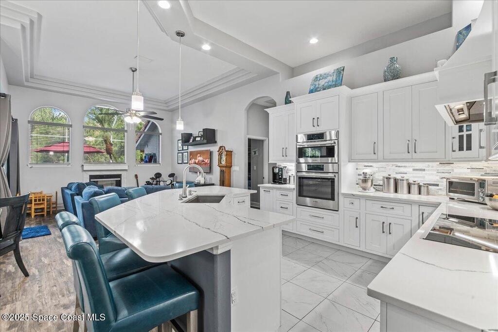 Discover unparalleled luxury living in Baytree, Suntree/Viera's premier gated golf community. This exquisite 2, 400+ sq ft luxury residence offers a sophisticated lifestyle within a secure, guard-gated enclave. Step into a sun-drenched split floor plan featuring a brand-new chef's kitchen, updated spa-like baths, and designer flooring. Walls of glass overlook your private oasis: a newly resurfaced pool and spa set against a tranquil pond and nature preserve view. The expansive, manicured grounds include a fenced side yard. Enjoy ultimate peace of mind with a newer HVAC system, modern appliances, hurricane shutters, and convenient gas features. Living in Baytree means 24/7 manned security and access to a Championship Golf Course. Located in a top-rated school district, minutes from the Space Coast beaches and Viera's world-class shopping, this turn-key sanctuary combines high-end upgrades with the exclusive amenities of golf community living. Schedule your tour today!
