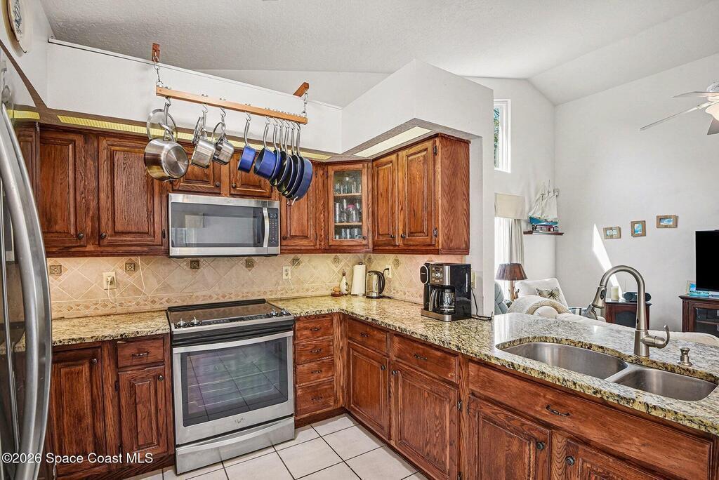 Located in a resort-style country club community with top-notch amenities, this 3-bedroom, 2-bath Phoenix model pool home offers a comfortable split floor plan and a great Florida lifestyle. The kitchen features stainless steel appliances, granite countertops, solid wood cabinets, and overlooks the family room--ideal for everyday living and entertaining. Wood laminate and tile flooring run throughout the home, complemented by vaulted ceilings. The spacious primary bedroom includes sliders leading to the lanai and pool. The updated primary bath offers a soaking tub, roll-in tile shower, and dual modern vanities. The guest bathroom has a shower/tub with a glass door and a clean, minimalist vanity design. Additional features include updated low-E windows and accordion shutters surrounding the home for added efficiency and storm protection. 18-hole golf course, shuffleboard, bocce ball, tennis courts,