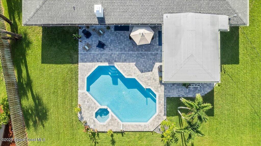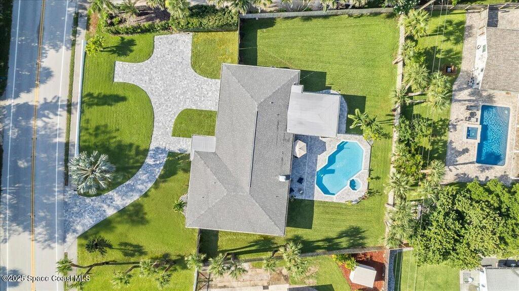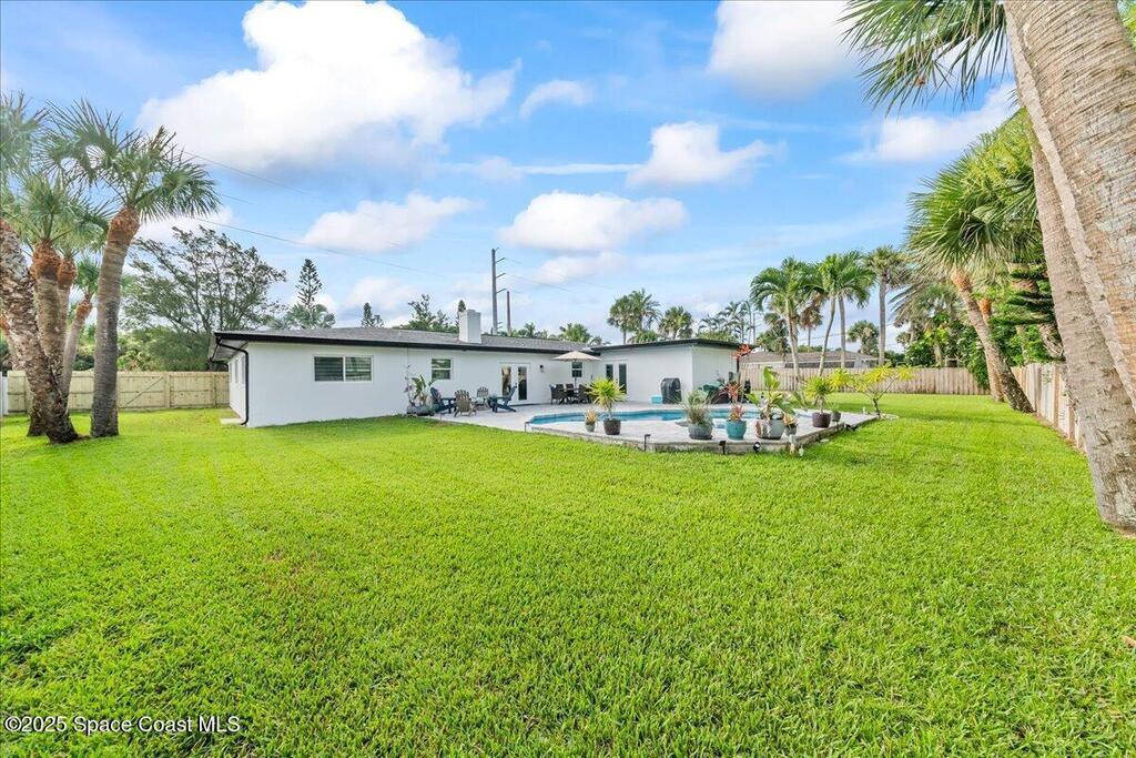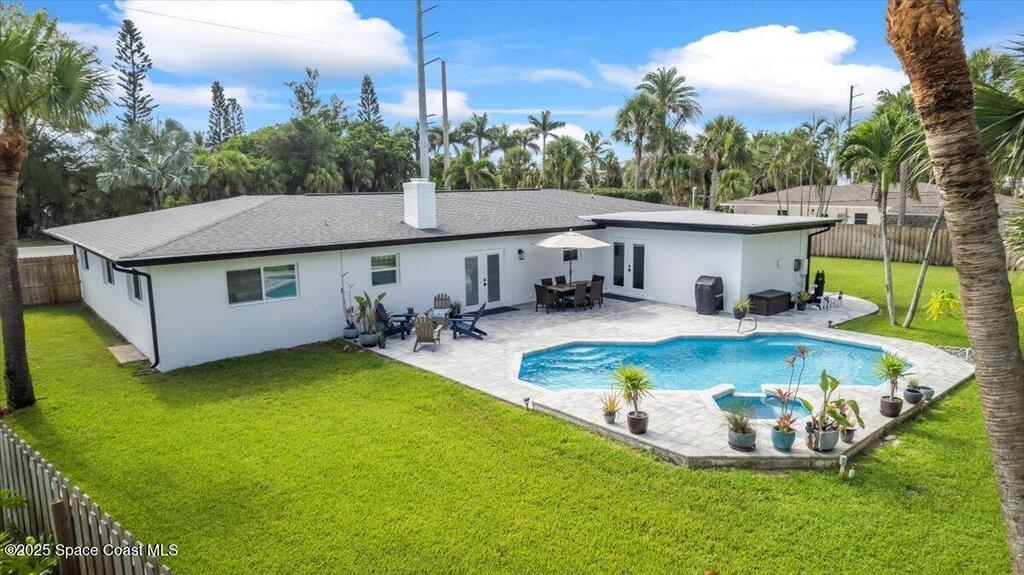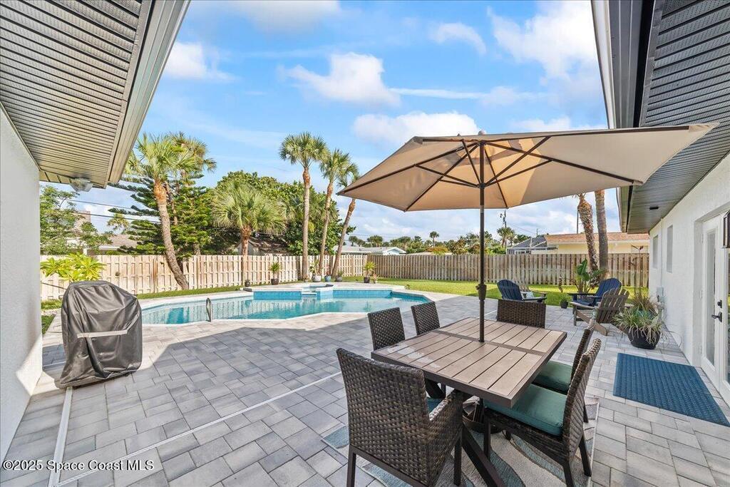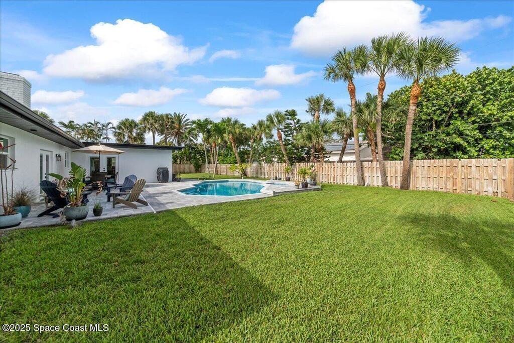 Coastal living in Melbourne Beach. Updated 4BD/2BA, 2, 394 SF home on rare 0.42-acre lot in the SoFA enclave. Deeded beach access shared by just 20 homes offers a quiet, private path to the sand. Expansive fenced yard lives like a private resort w/ premium Freestone pebble-finish saltwater pool/spa, upgraded paver patio, & space to relax or entertain. Interior features include lime-washed brick wood-burning fireplace, built-in kitchen banquette, & light-filled living w/ indoor-outdoor flow. Major updates: newer roof, new Trane HVAC, impact windows, fresh exterior paint, paver driveway, & updated PVC water service line. Rare assumable 4.5% VA loan for qualified veterans.